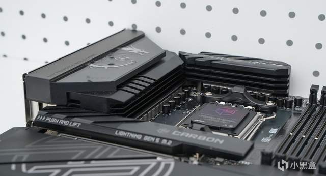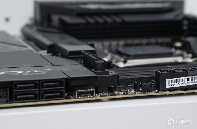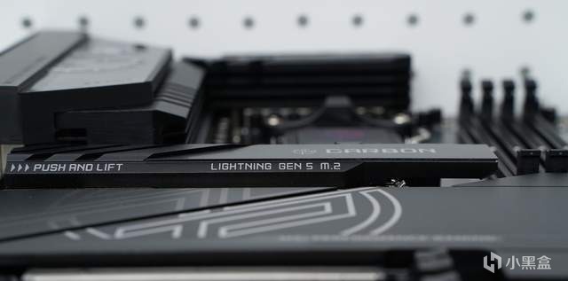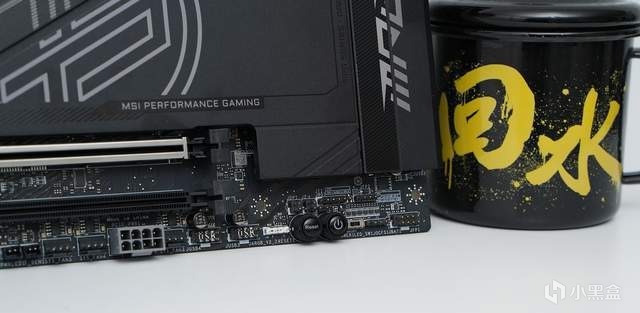 灰色的8pin接口用于加强PCIE部分的供电,无论你是用RTX50系列显卡又或是双路显卡用户,它都能能为PCIE插槽供电助一臂之力。右边两个精致的小圆按键是重启和电源键。