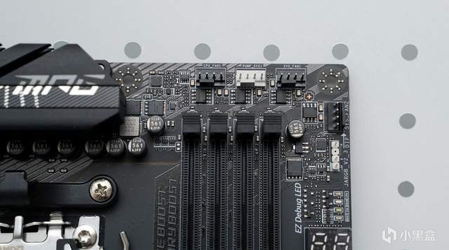 显卡快拆键也是现在中高端主板标配,毕竟这类主板用户基本上都是用RTX4070或以上这种超厚显卡,有了快拆件拆卸显卡不再困难。右边的是EZ Conn(JAF_2)接口。它创新在于能通过一个接口就能融合了ARBG灯效、4Pin PMW风扇和USB 2.0三个功能。