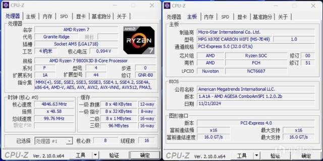 本次测试平台用的是微星MPG X870E CARBON WIFI暗黑主板。这外包装颇显活力,与AMD R7 9800X 3D的包装显得很搭,不知你们有没有这种感觉?
