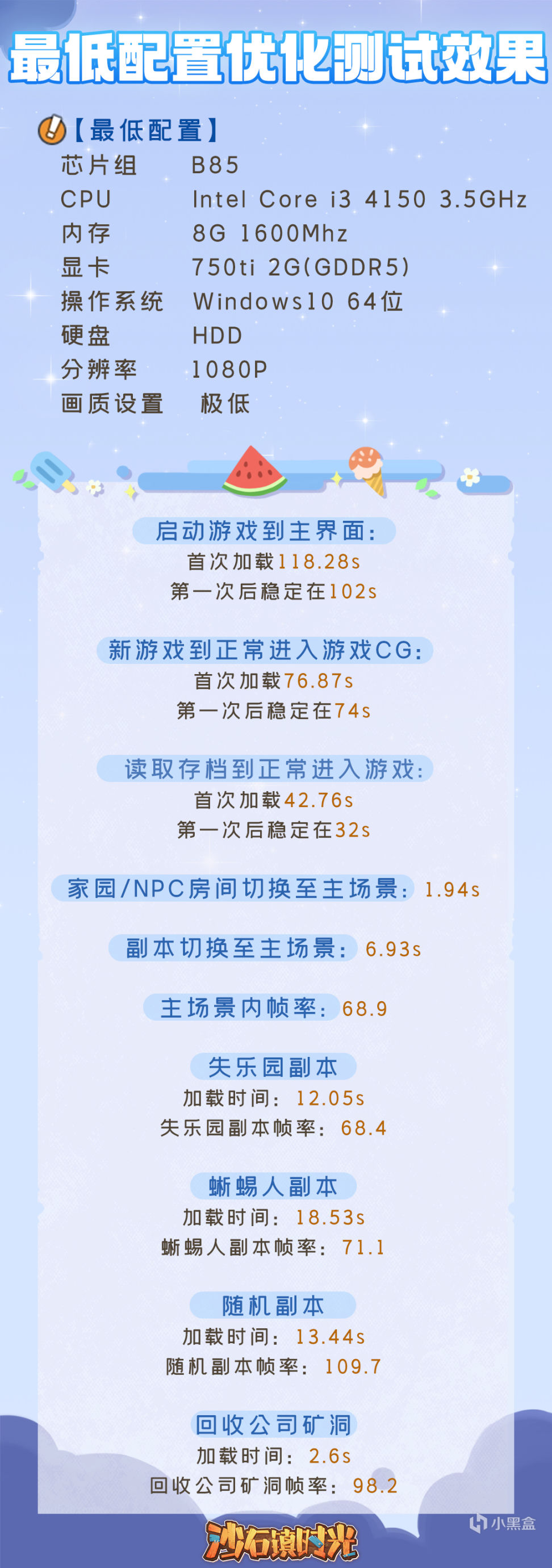 由于篇幅有限,这次仅展示了我们推荐配置/极低配置下,高/极低画质的加载时间和帧率表现情况: