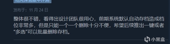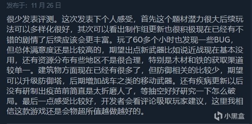不过游戏首发因为内容过于单一,大量bug等原因评价并不是很好,但好在制作组非常积极的听取玩家意见,在黑盒官方账号也在收集反馈玩家意见,同时也不忘高频率的发布更新内容和补丁,在最近的一次更新中便包含了新的科学家剧情线、新机制、新地图等等大量内容,游戏目前好评也开始回暖!