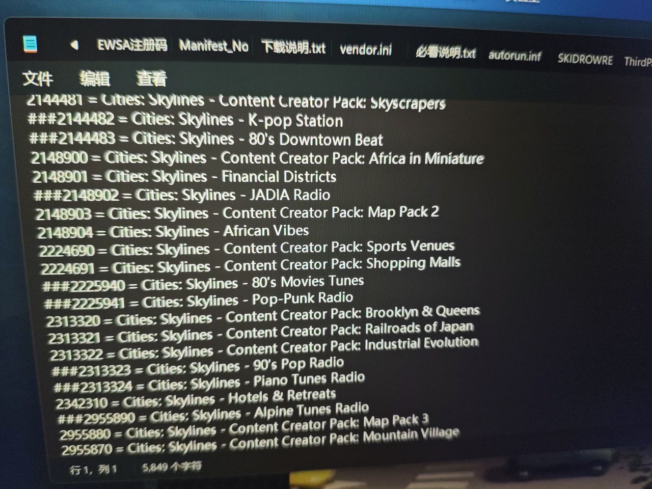 找到你不想要的dlc,在前面使用3个#号就可以(###)这样就行,记得要保存。