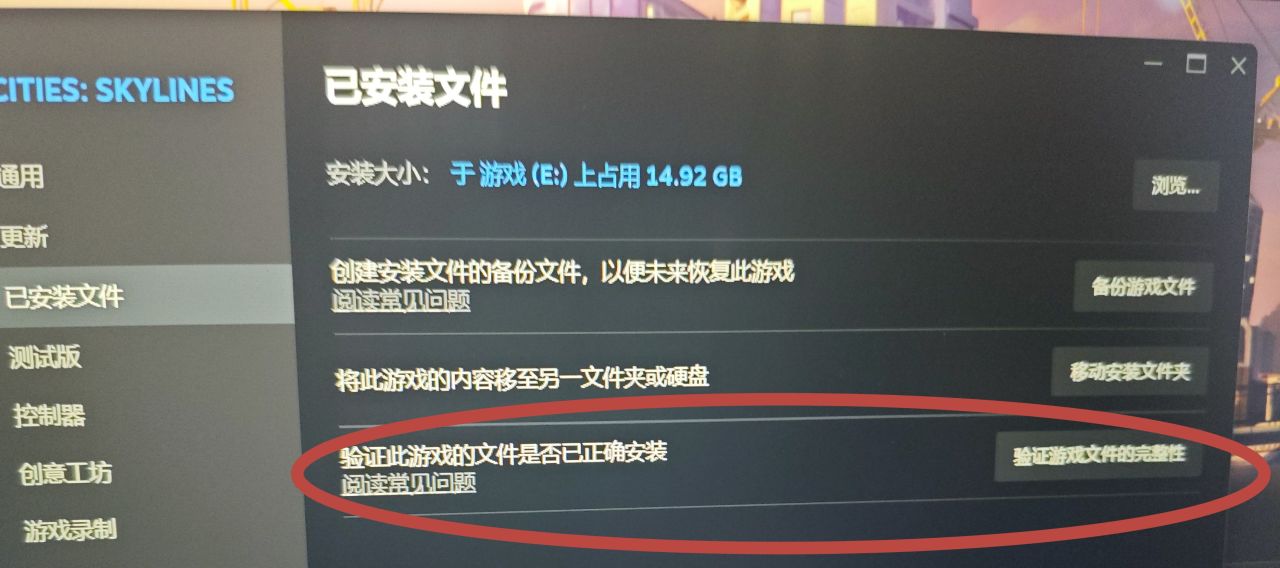 steam上天际线点属性、点已安装文件、点验证游戏文件的完整性。