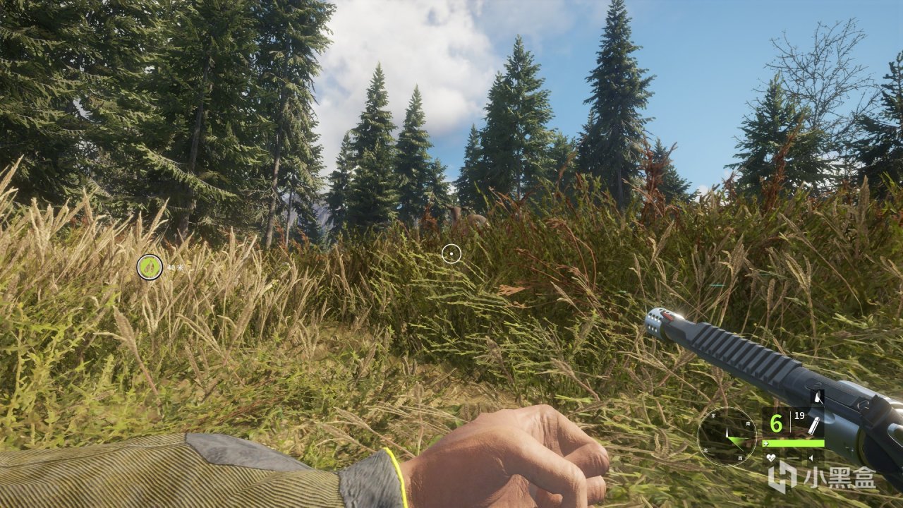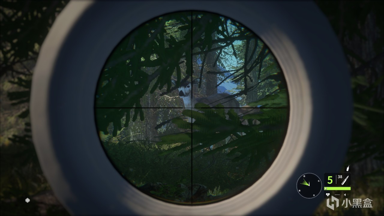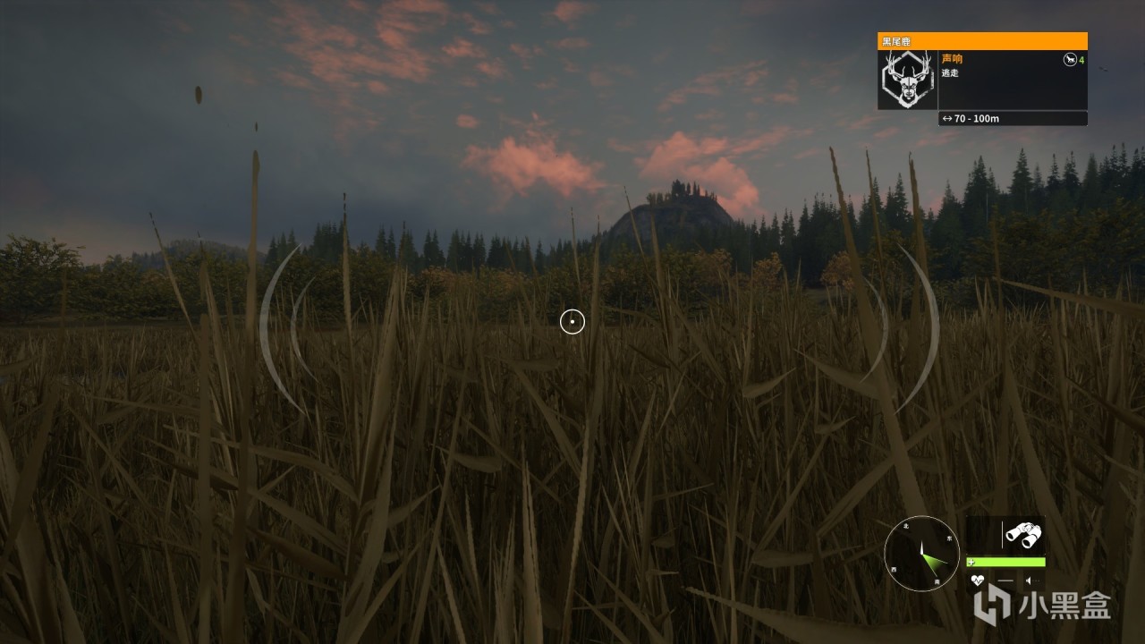 因此當獵物出現在視野中,或者確定其大致方位和距離後就要放慢腳步了,此時要隨時留意右下角的噪音指示器,不在被獵物直接看到的角度的話儘量避開草叢和樹林,爲什麼呢,因此當人物與草叢、樹枝、落葉這些東西接觸時發出的噪音太大了,舉個例子在落葉上蹲行的噪音等於甚至要大於在平坦地面直立行走發出的噪音,因此能避則避,實在沒辦法的話就趴下來通過,不然你就會體會到什麼叫做“打草驚蛇”和“做鳥獸散”了。