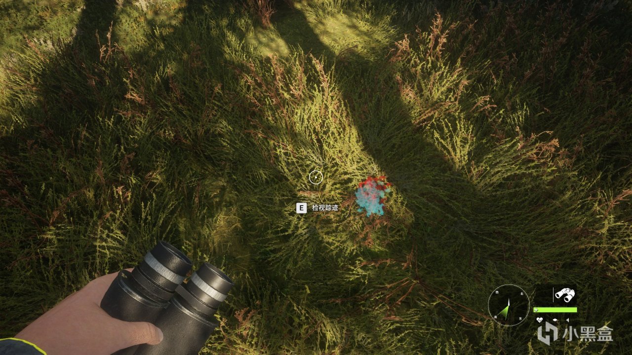 除了獵物發出的聲音外,遊戲還提供了其它方式輔助玩家捕獵,首當其衝的便是獵物活動時留下的蹤跡,如腳印、糞便等,對着這些內容按鍵便會獲知獵物的信息並將目標的所有蹤跡高亮起來,其中腳印可以提供目標的行進速度和方向,糞便則能提供目標出現在此處的大致時間,如果顯示不久前、新鮮那還有追蹤的必要,要是顯示有段時間和很久以前那還是放棄吧,要不然得追到天涯海角去或者乾脆追着追着就沒有下一個有效蹤跡了。