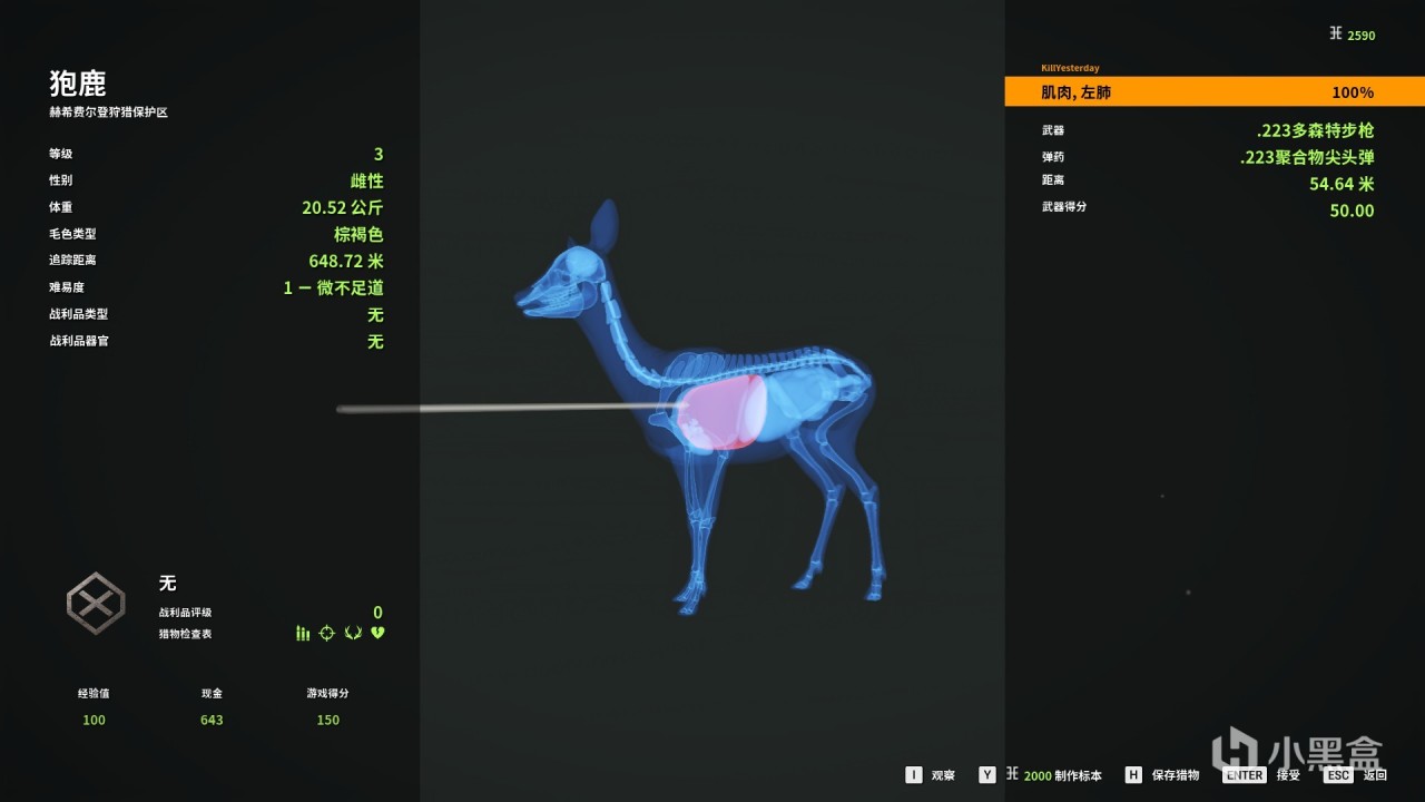 當幹掉一隻獵物後,對着其互動便可以進入詳情界面了,這裏記錄着獵物的各類信息,此時按下鼠標右鍵會進入X射線透視圖,其顯示了獵物的受擊部位和身體構造,通過這裏便可以掌握其內臟所在。