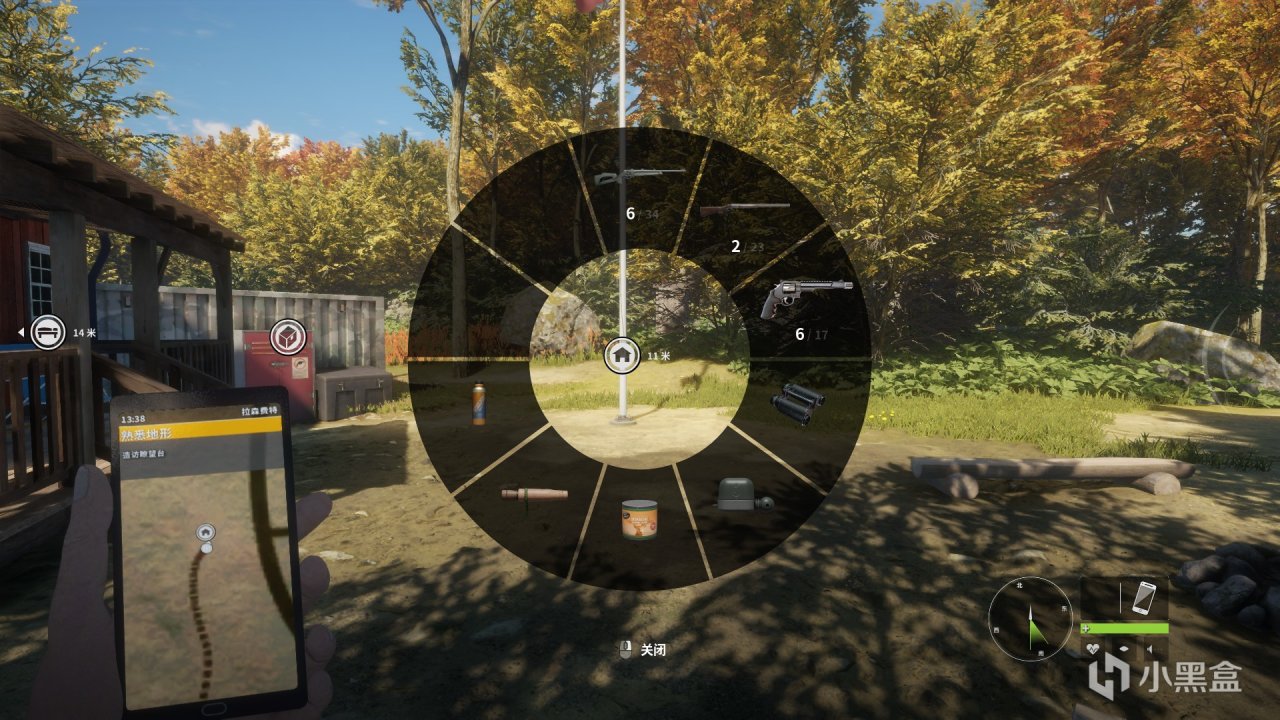 默認帶着三把槍,分別是步槍、霰彈槍和左輪,狩獵首選步槍,按主鍵盤區的數字123即可切換,右鍵開啓瞄準,此時滑動輪可以調整倍率,按下Shift鍵可以屏住呼吸來穩住準星,憋氣事件過長、連續憋氣、長時間奔跑後人物都會過累,無法立即屏息,等待幾秒鐘即可。