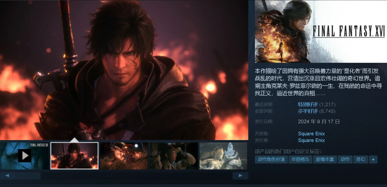 11,最终幻想16(原价:298元,现价223.5元,杉果配券:198元)