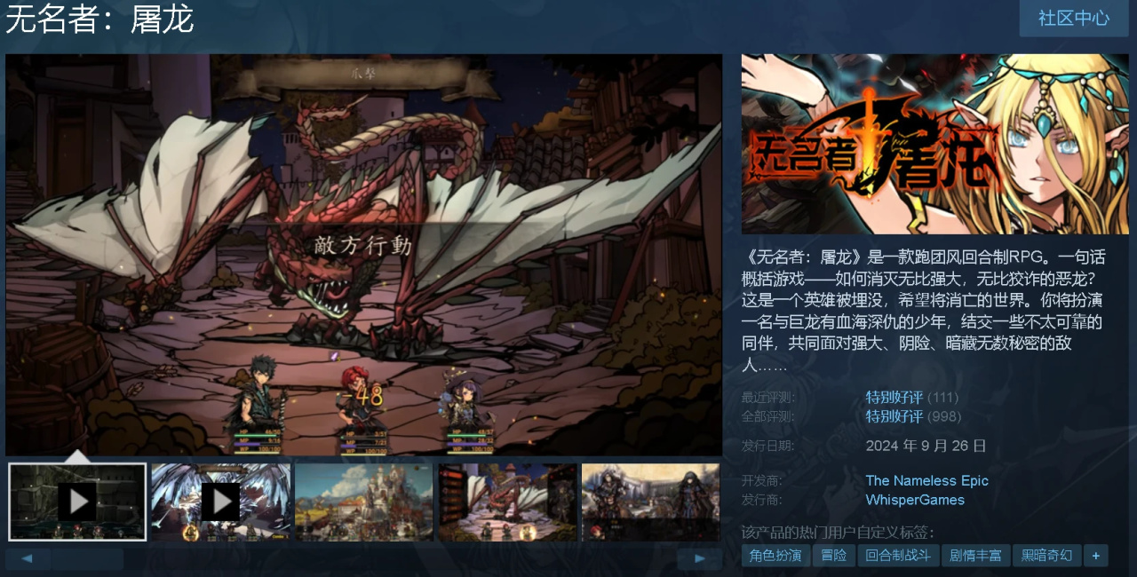 国单作者,不止会做武侠,还会做西幻题材!实话实说,在游玩完DQ3重置版之后,我对这种战斗视角的游戏就没兴趣了。但《无名者:屠龙》又将我对这类游戏的好感勾起来了!