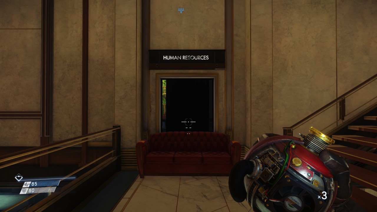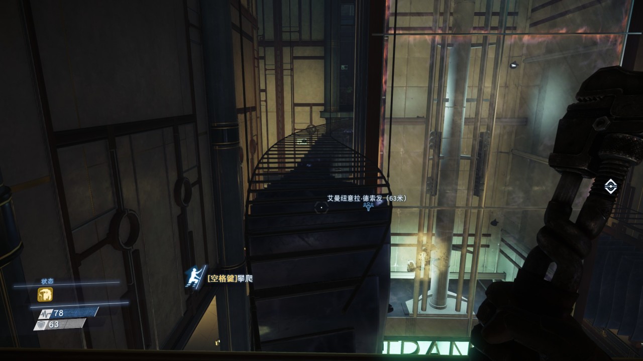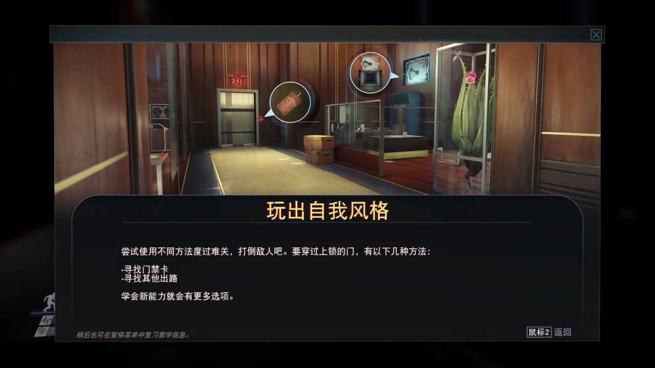 再来,某个上锁的门你可以找密码解锁;或者黑客技能直接黑入;或者拟态钻缝;又或者,游戏有个射击武器叫飞箭女猎手,可以射出玩具子弹,那你可以找个缝能看见房间电脑,然后利用玩具子弹操控电脑屏幕来开门。可以说,游戏里的探索是处处都是惊喜,你有可能莫名其妙的就找到了一种打开某个大门或者前往某个新区域的方法,而这个过程所带来的正反馈是无与伦比的。