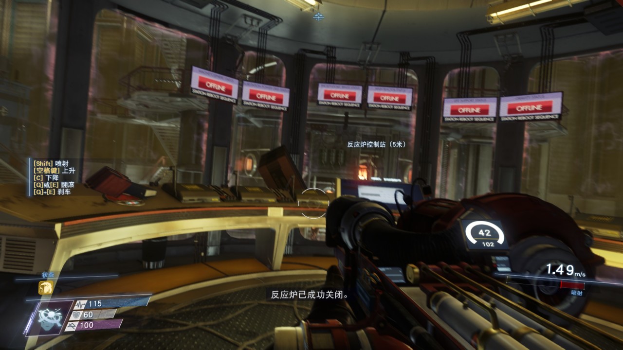 没错,我个人认为,《掠食》在舔图探索方面基本是毫无限制,你想怎么玩就怎么玩。比如,某个区域通往二楼的门被锁上了,重力电梯也没启动,但这并不代表你上不去。游戏里有一把枪可以射出凝固泡沫,这个泡沫射在非玻璃的墙上可以构造出攀爬点,因此你可以利用这把枪在墙面造出一个梯子或攀岩搭子,然后疯狂跳跳跳就能直接上到无法探索的二楼区域。