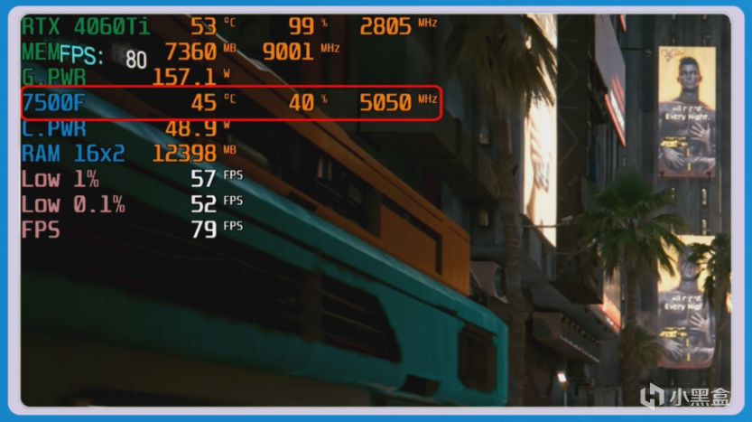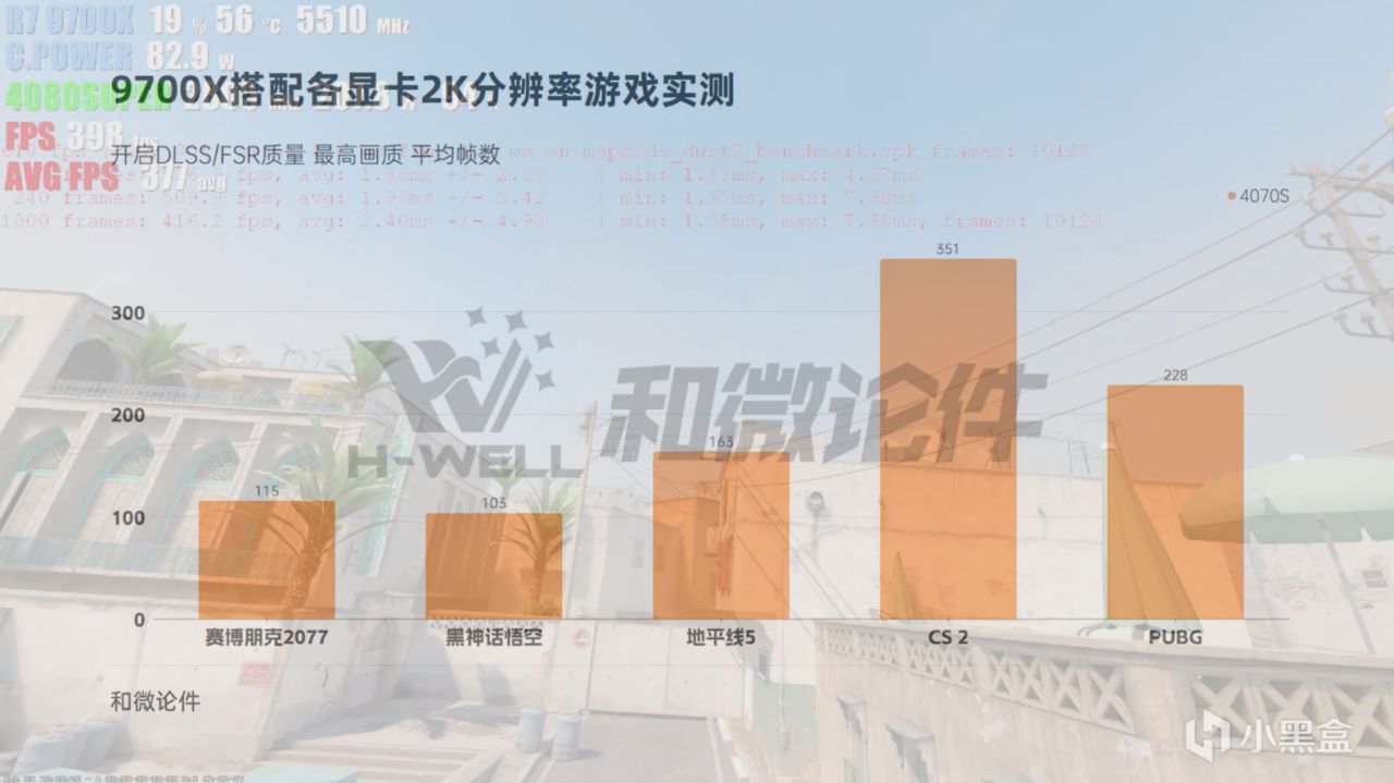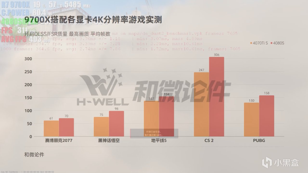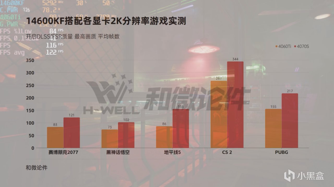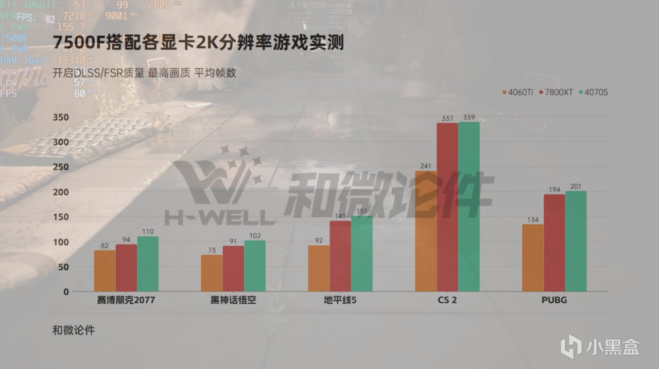我們爲4060Ti以及4070SUPER是進行了2K分辨率的測試,測試結果都要比之前用7500F搭配幀數高一點,4060Ti 2K其實已經完全沒有瓶頸了,4070SUPER更多是起到一個錦上添花的作用。讓我們的遊戲體驗更棒。