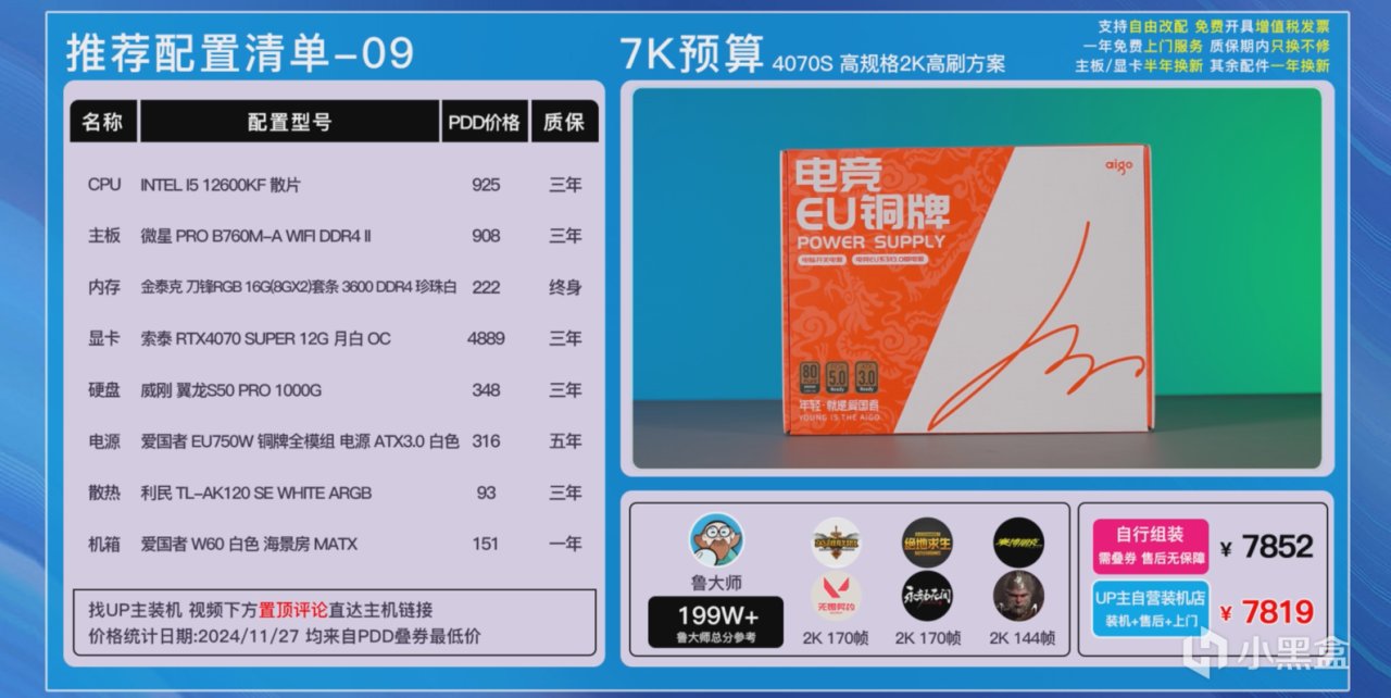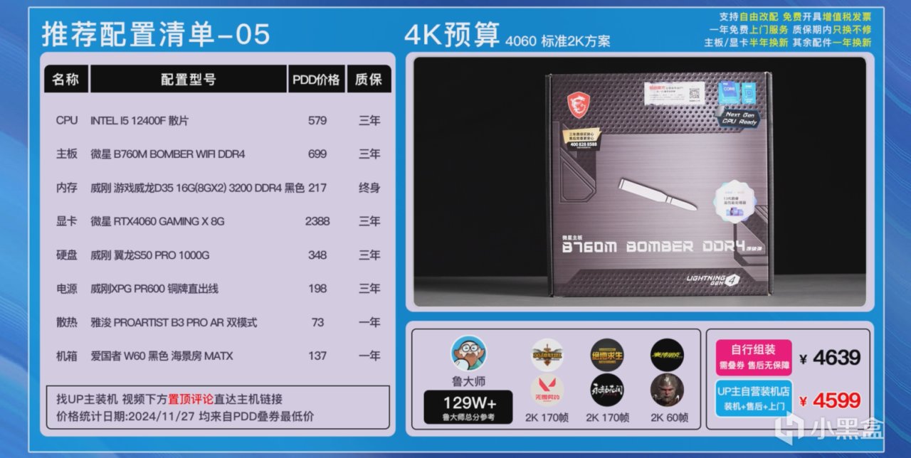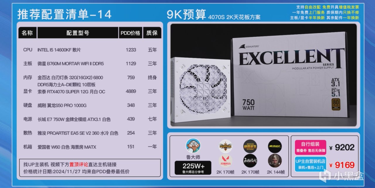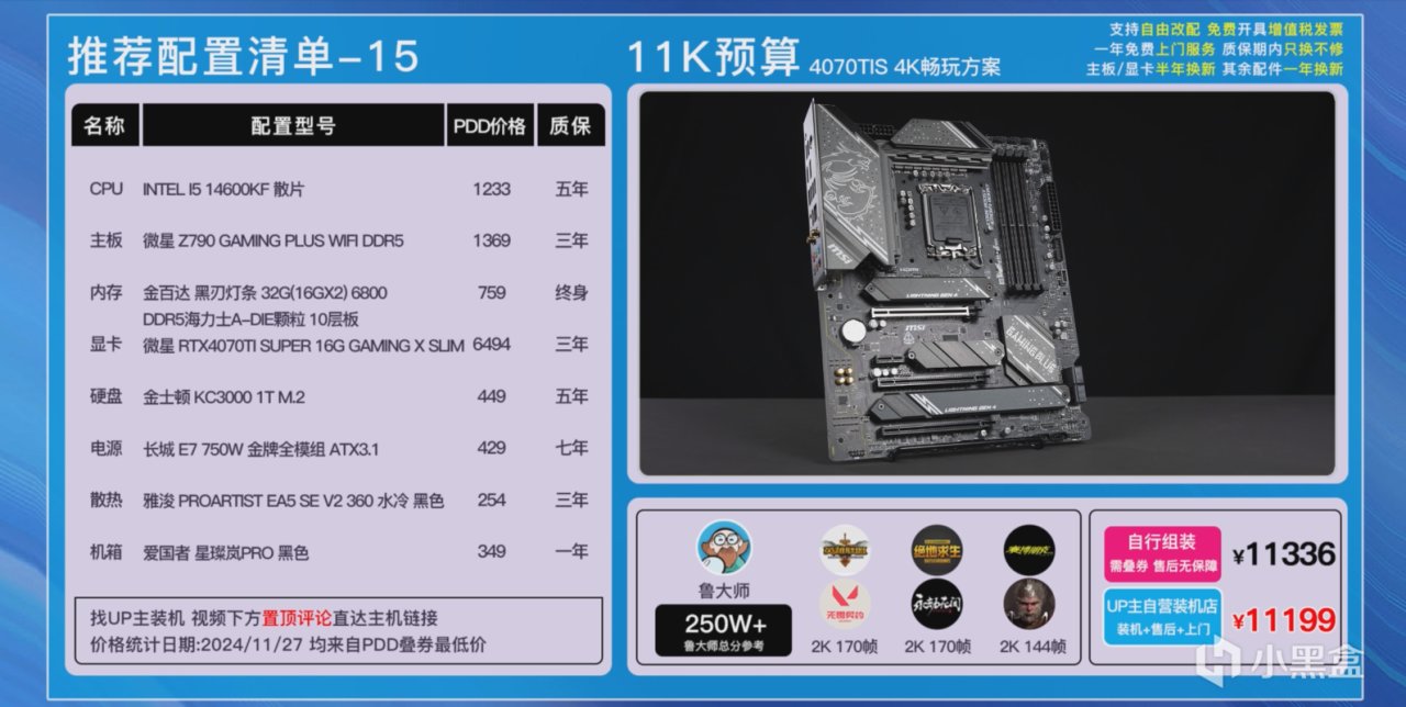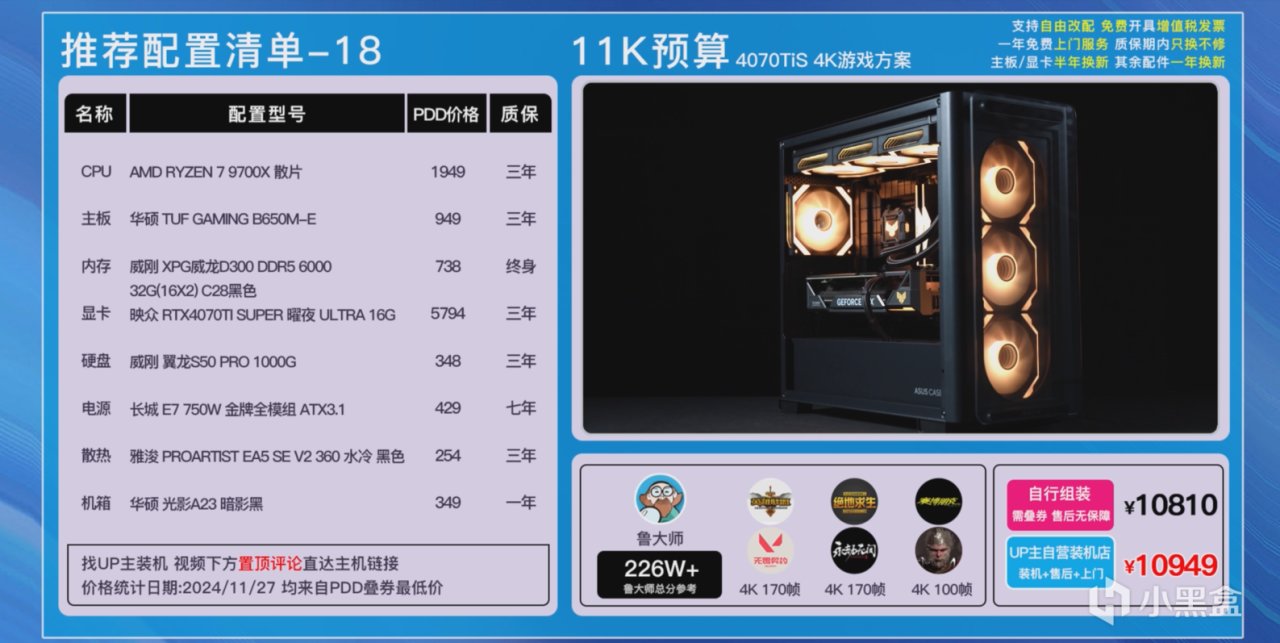 4070SUPER的方案對比上一套是僅更換了顯卡,配置中的每個硬件大家也都比較熟悉了。