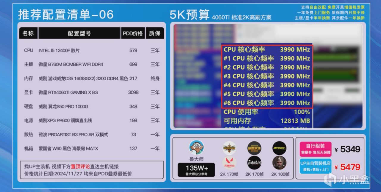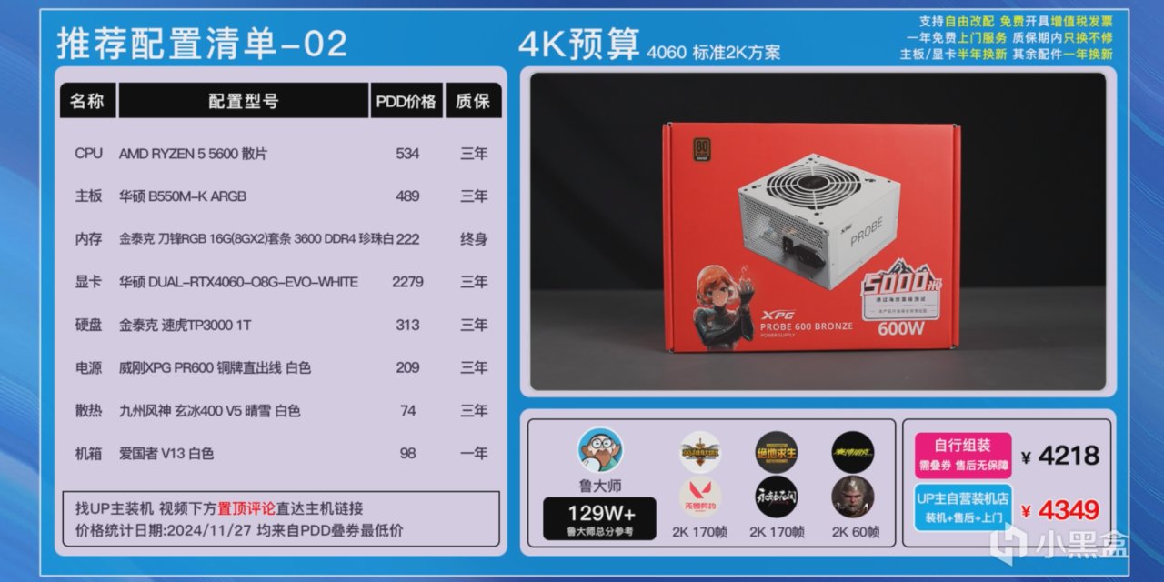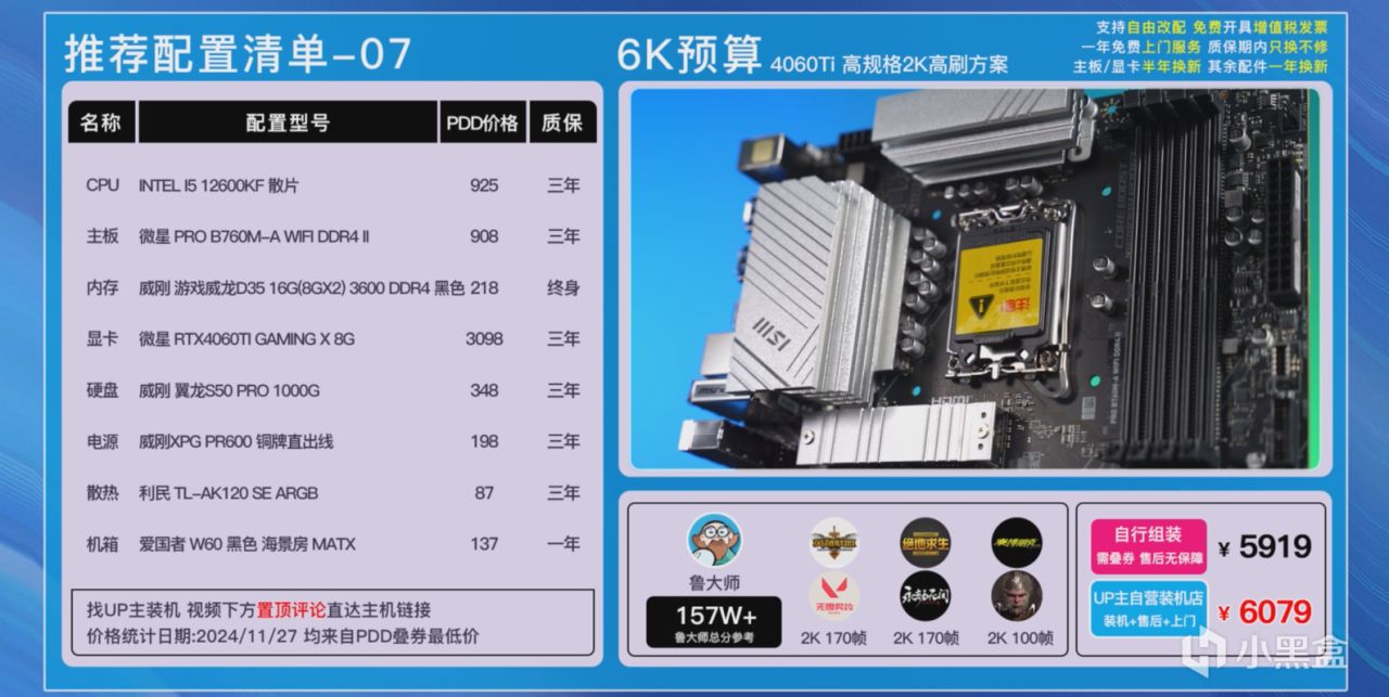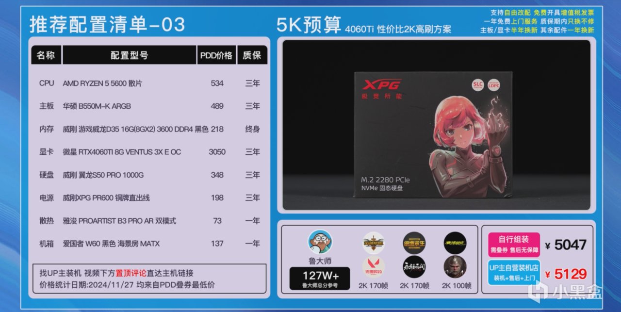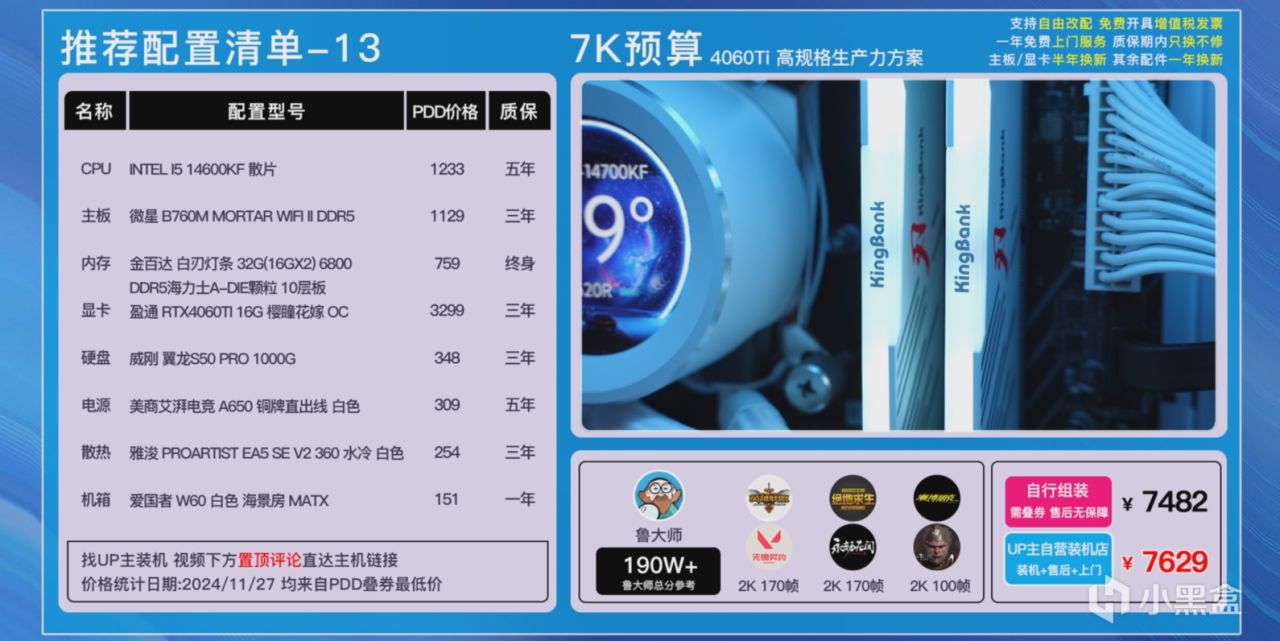 4070SUPER的方案對比上一套是僅更換了顯卡,配置中的每個硬件大家也都比較熟悉了。