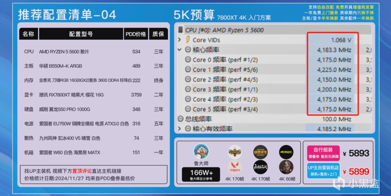 搭配這幾張顯卡的主機,對於追求性價比的小夥伴們來說,既要保障出色的遊戲體驗,又要兼顧一些輕度的生產力應用,那麼CPU這裏,AMD這裏價格500多元的R5 5600是一個不錯的選擇。