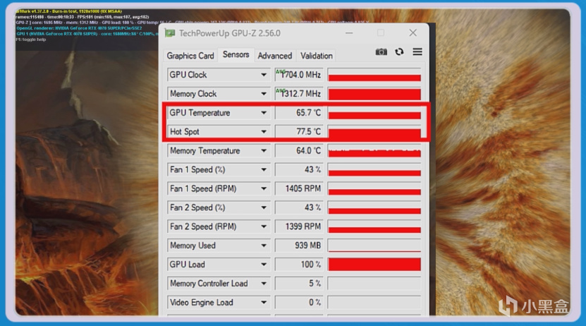 顯卡部分,微星4070SUPER黑神話悟空聯名版在甜甜圈烤機測試中,顯卡功耗爲217.7W時,GPU核心溫度爲65.7度,熱帶溫度來到了77.5度。