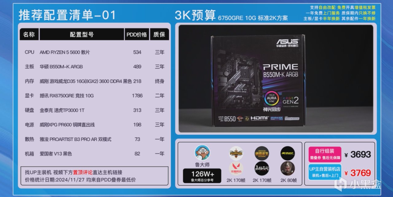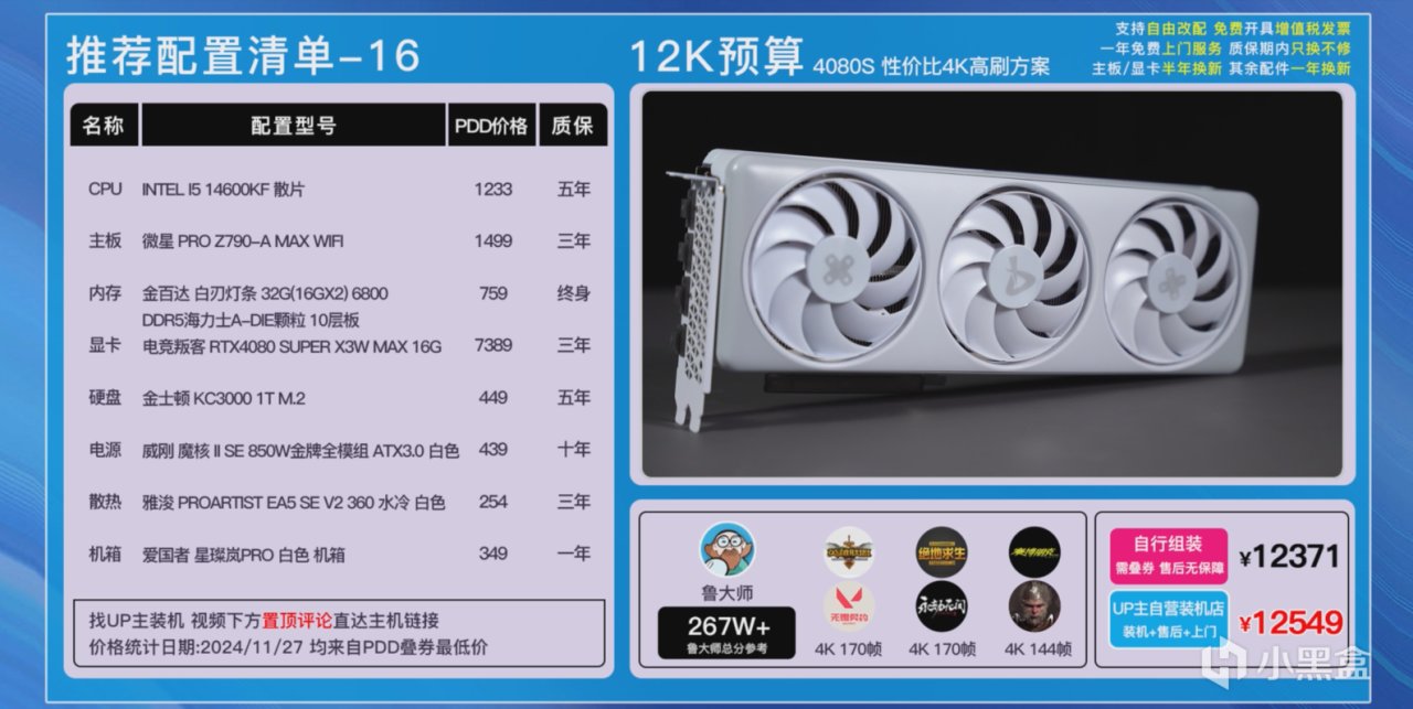 【24年12月配置推薦】不做無腦推薦!3K-2W!22套超高性價比配置!