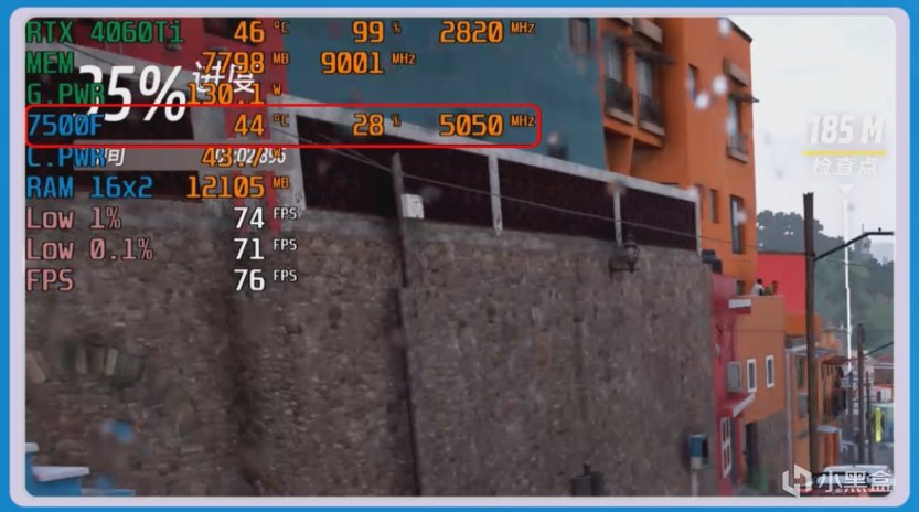 在實際的遊戲過程中,頻率是完全跑滿至5.05Ghz,溫度僅爲50度上下,這一套平臺讓7500F發揮算是毫無壓力了。