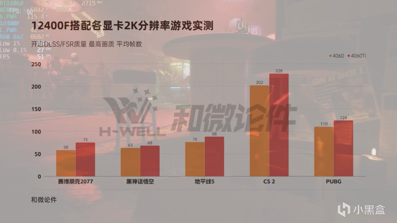 測試環境依舊選擇的是2K分辨率的最高畫質,好在在英偉達的DLSS加持下,在大多數3A中4060都是可以保證流暢運行的,顯卡升級到4060Ti則是可以接近百幀暢玩,CS2和PUBG這類的網遊更是可以達到高刷的電競幀數,對於絕對多數人來說,遊戲性能肯定是完全夠了的。
