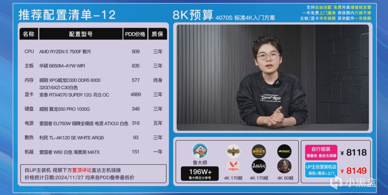 我們認爲,做配置推薦並不是簡簡單單教會大家硬件搭配的合理之處,另一方面就是告訴大家,要在合適的時間點購買合適的產品。如果你打算在2024年最後這個月獎勵自己一臺全新的DIY主機,那麼恭喜你刷到了本期文章。本期《和微論件12月主機配置推薦》依舊貫徹我們的理念,不做無腦推薦!這一次我們是總共準備了22套不同預算的整機方案,價位段涵蓋3-19K,大家可以在各個平臺自行搜索一下價格,也可以在UP主自營店鋪《和微論件DIY電腦》一鍵裝機畢業,每一套主機都我們進行了裝機實測,確保穩定性和兼容性不會有任何的問題,而且我們還有400多G的實測數據,這可不是雲推薦哦!