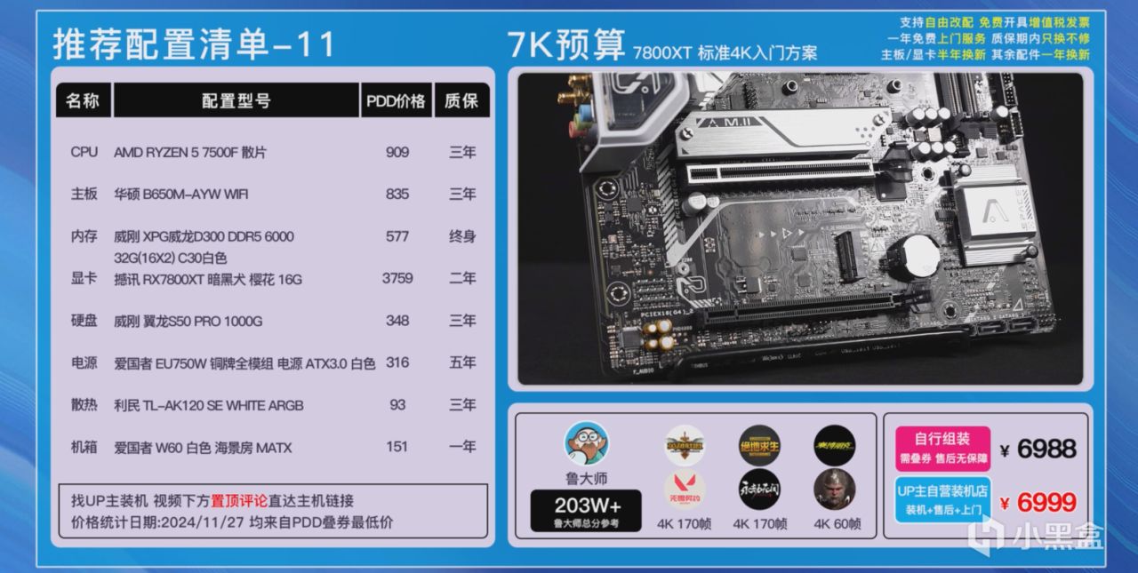 考慮到Intel的主板目前已經更換了LGA1700的接口,也就意味着後續打算升級CPU,你只能在13、14代酷睿中進行選擇,但是畢竟這兩代酷睿都被爆出了縮缸的問題,如果你確實對13、14代酷睿比較介意,那麼AMD承諾,至少可以用到2027年不更換接口的AM5平臺也有非常好的選擇,與12600KF價格接近的R5 7500F,不僅擁有比12600KF更強的遊戲性能,後續即便是想要升級7800X3D或者是9800X3D,主板這裏我們也能剩下不少的預算。搭配7500F的顯卡,4060Ti、4070SUPER依然是非常高性價比的組合,在這兩張顯卡中,AMD的RX 7800XT也是一張性價比非常高的顯卡。