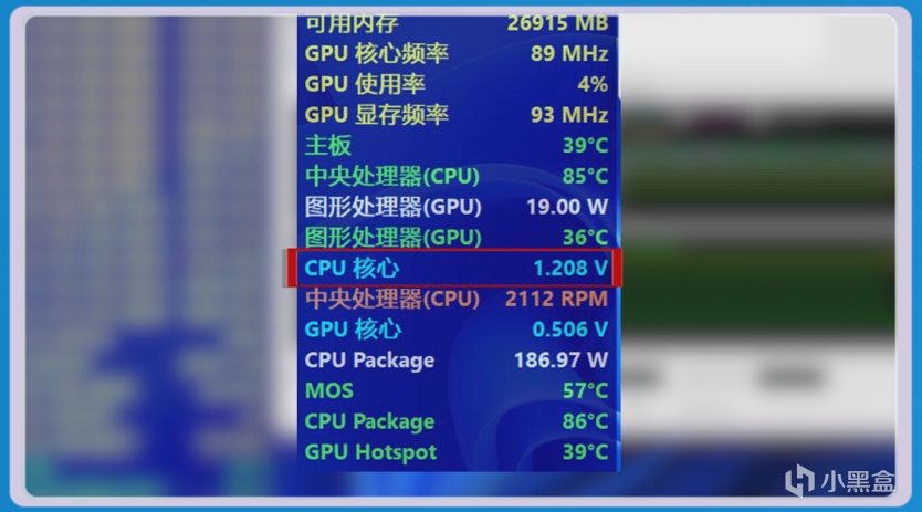此時功耗來到了186W,雅浚的EA5 SE 360水冷是將溫度控制在了86度,電壓則是控制在1.2V,非常的保守,不用擔心縮缸問題。