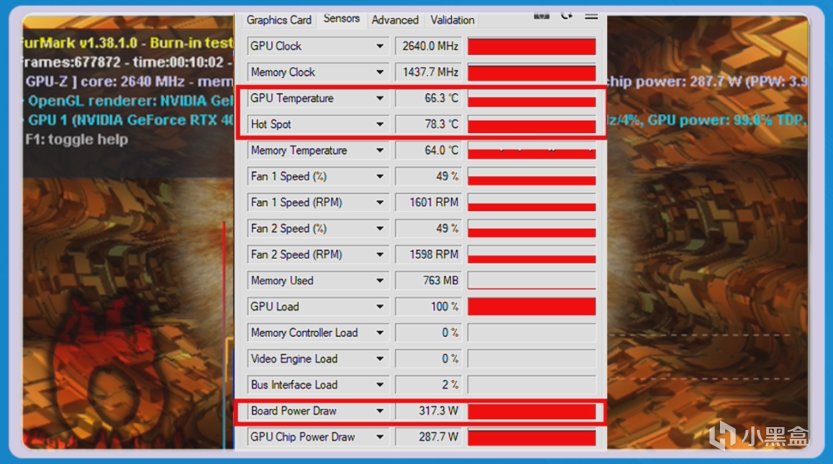 電競叛客4080SUPER X3W MAX顯卡在3D MARK TIME SPY 得分24755分,Pory Royal得分15906分,滿載狀態下它的功耗是來到了317W,此時GPU核心溫度只有66.3度,熱點溫度也僅有78.3度。