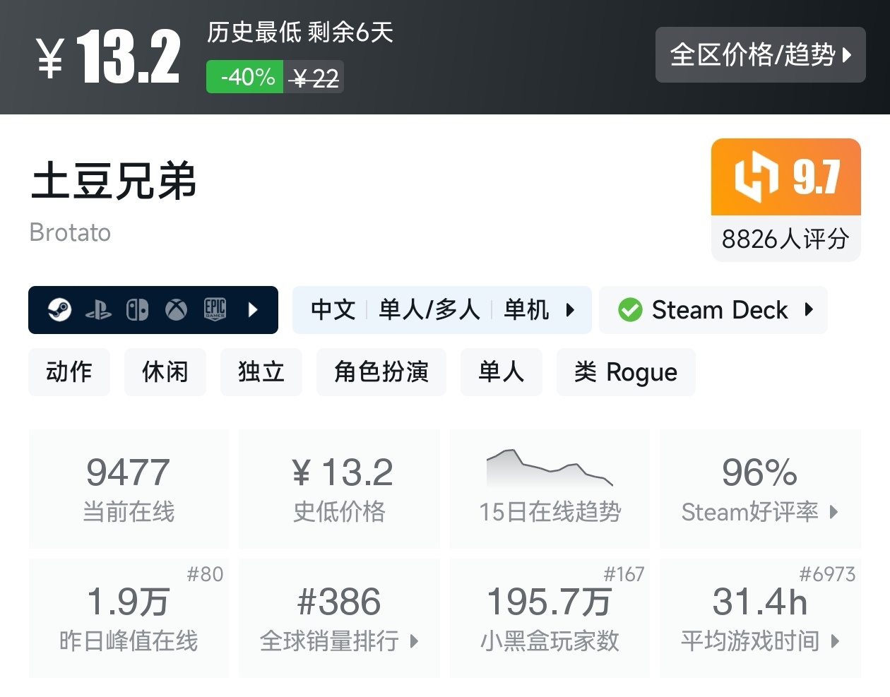 大家好,没错,又是我,那个肉鸽爱好者,既然是大促,怎么能少的了我们的肉鸽类型呢,今天我想给大家汇总一下这次秋促那些打折的肉鸽游戏,希望能帮助到各位盒友进行挑选心仪的肉鸽游戏,当然,我尽量每款游戏都给出我的推荐理由与攻略心得。