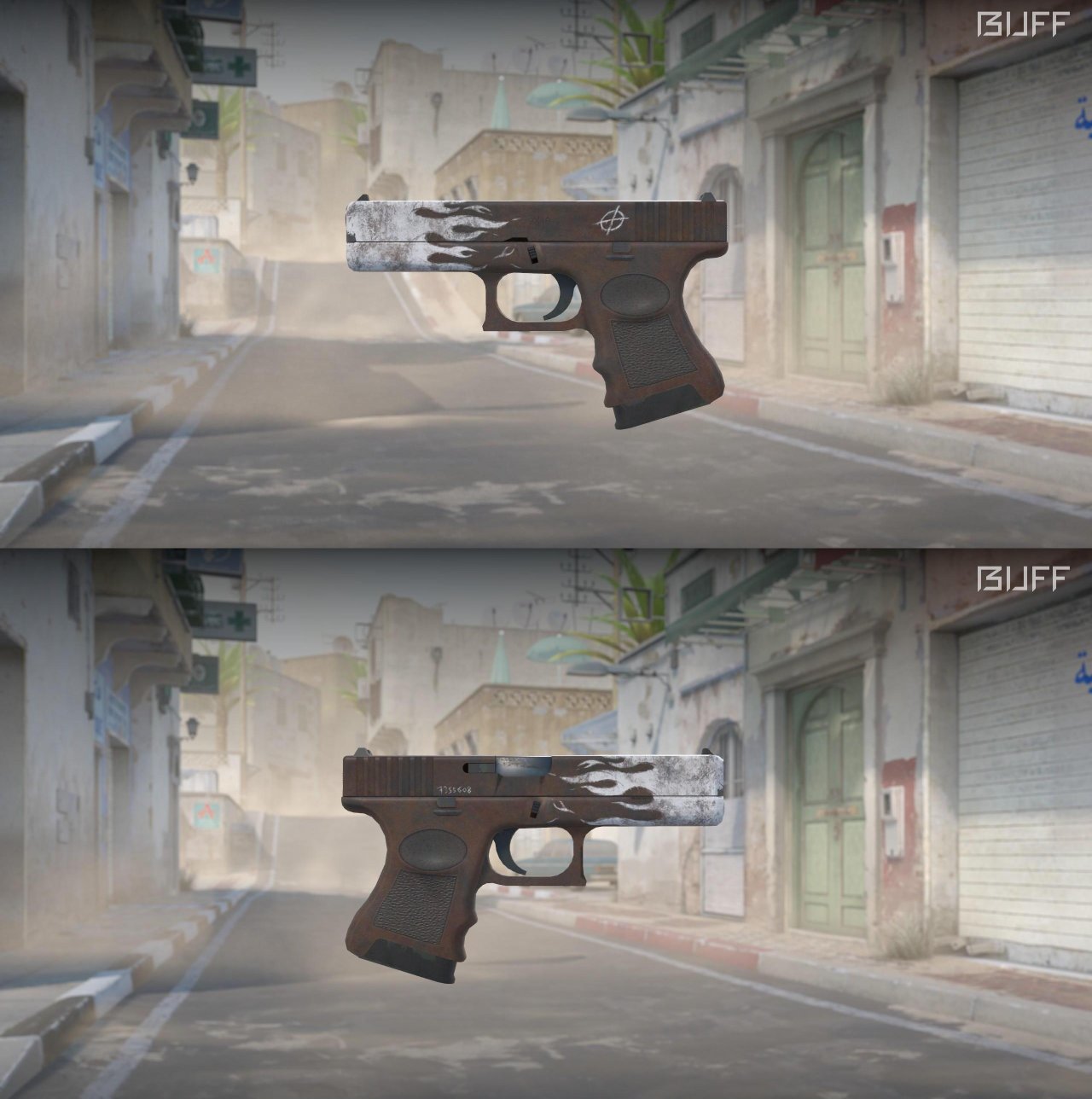 生锈风格的枪管设计和枪口出的白色火焰,和一些印花很搭,可以发挥出很不错的效果,推荐略磨入手