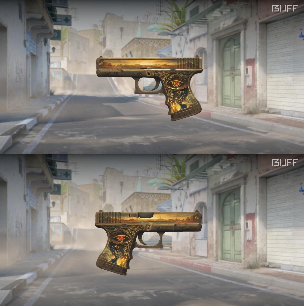 无论是握把上的眼睛与人像,还是枪管上的无垠地貌,都能体现出这把枪皮体现的文明浩瀚,亮度比较受影响,并且这款枪皮比较适合贴一些印花作搭配,推荐久经入手