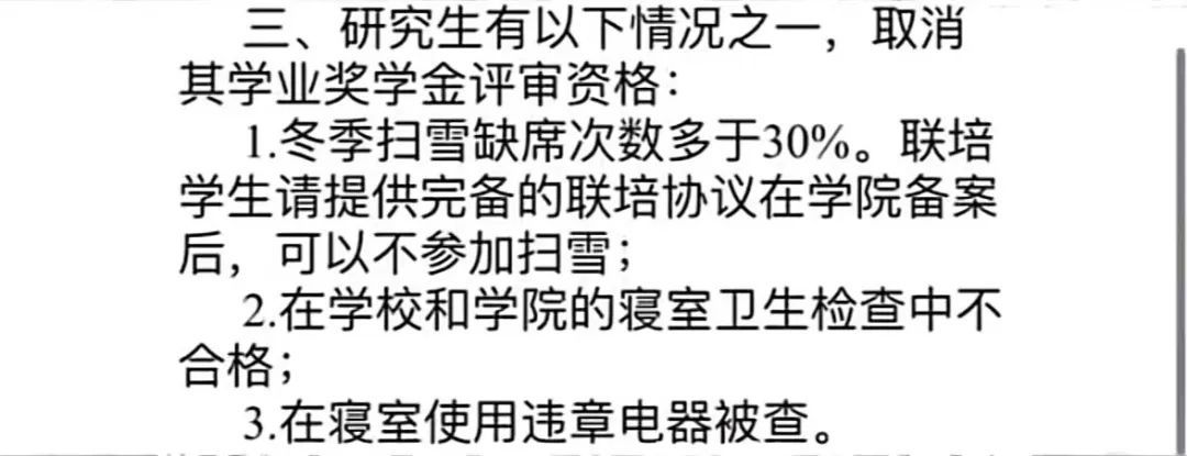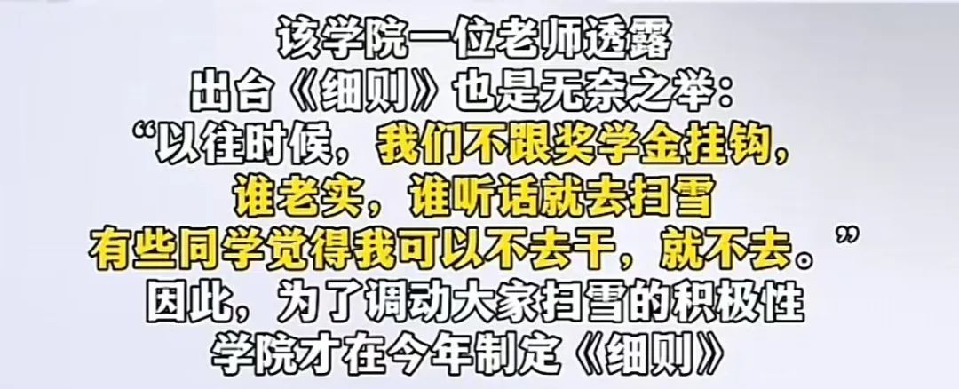 据该高校学生透露,此细则于三天内发布,目前已经有学生投入到铲雪工作。