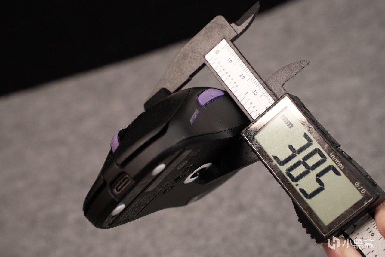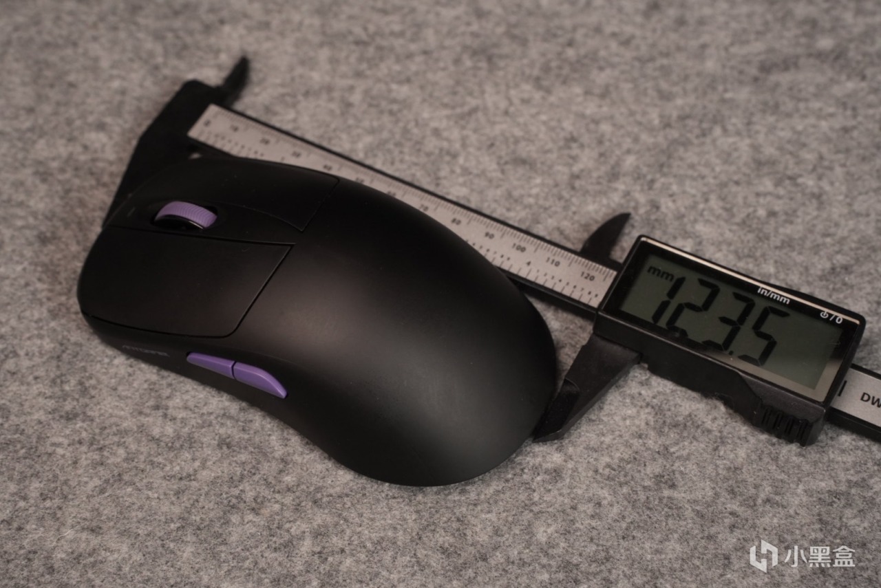 在鼠標的尺寸方面,鼠標長123.5mm寬:63.5mm高38.5mm屬於一個標準的大手鼠標,那麼在結合前面所說的,那麼這款鼠標是一款標準的大手抓握鼠標。非常適合抓握人羣使用。