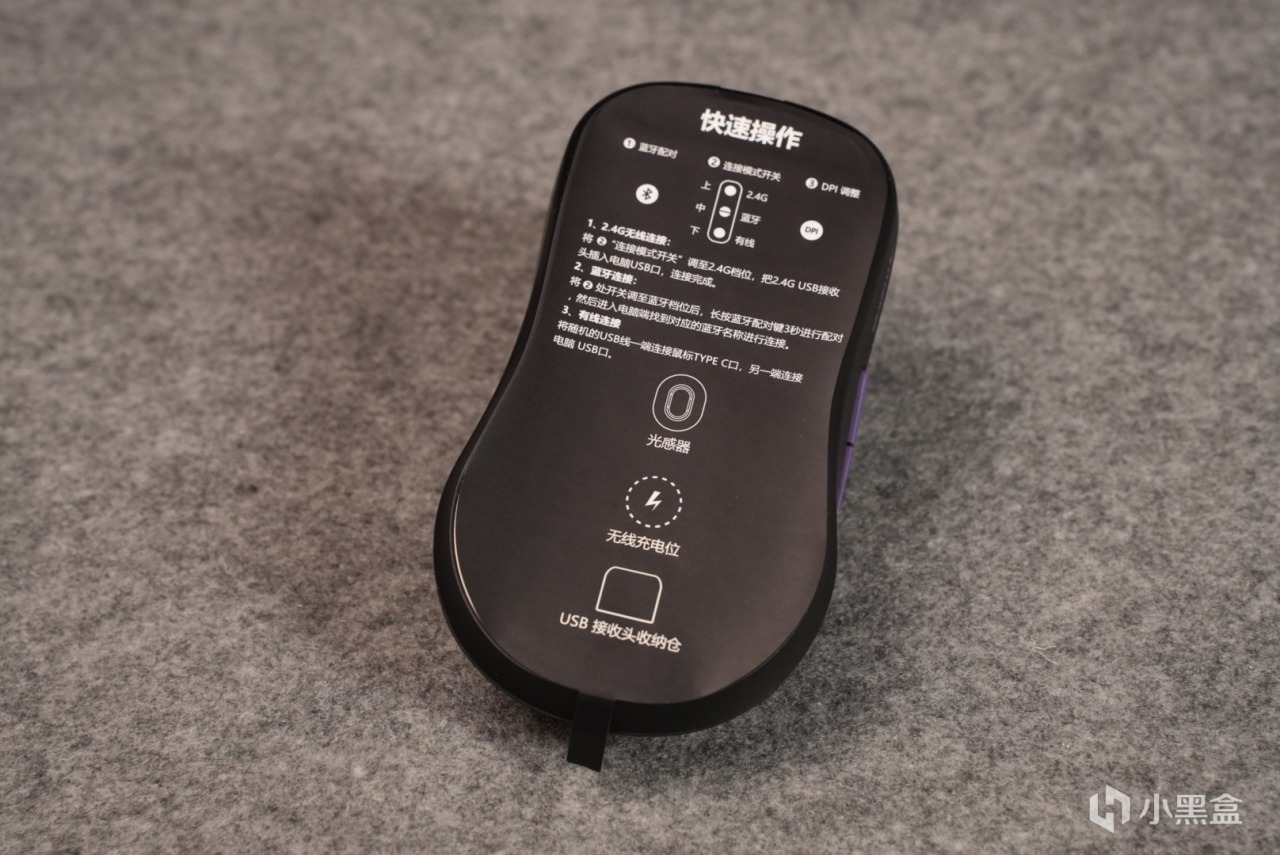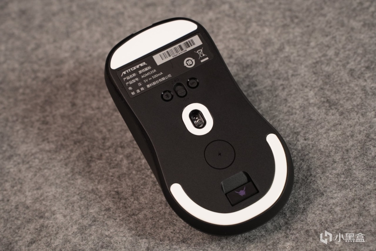同時dpi調節以及模式調節都在鼠標底部,關於dpi調節的位置,其實這玩意還是見仁見智了,有人喜歡放在底部有人喜歡放在上面。而且這個無線充電,對,你沒看錯,他支持無線充電,具體怎麼實現的後面拆解的時候會說到。