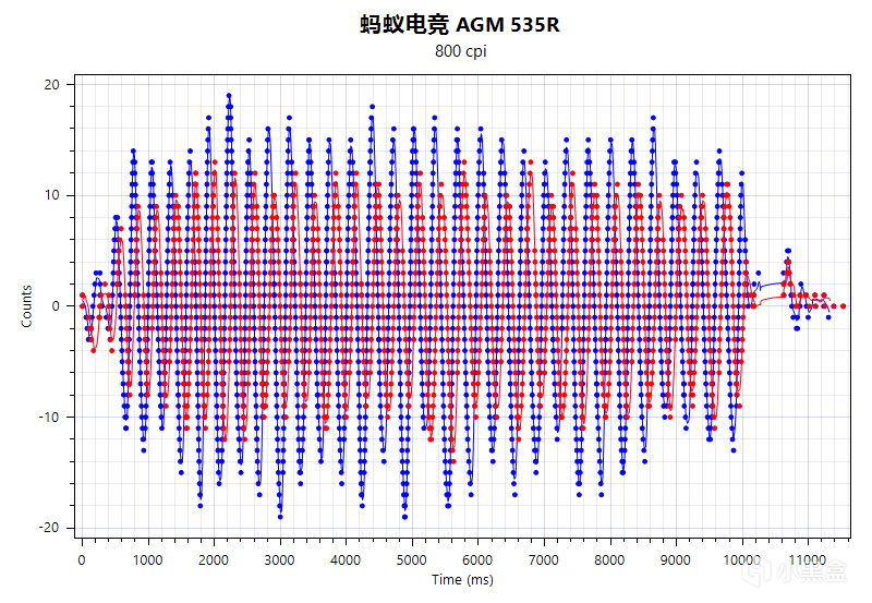 在鼠標丟幀測試環節,800的dpi情況下,可以看一下中間的丟幀情況,可以說是非常的少,幾乎可以忽略不計,不丟幀的設計真不錯。
