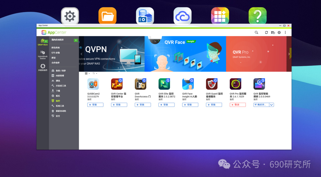 首先需要在威聯通上安裝QVR Pro監控服務,這是威聯通爲監控攝像頭推出的監控套件
