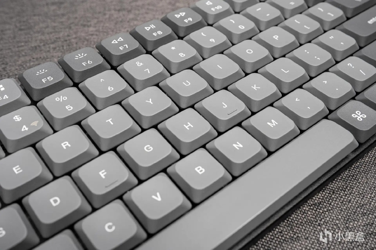 鍵帽特寫,Keychron K3 Max採用的是LSA高度鍵帽,不透光,但是配置了背光設計,還可以通過鍵盤上的燈光鍵進行背光切換。PBT材質的鍵帽做了磨砂工藝處理,觸感舒適,耐磨性也要比ABS鍵帽更好一些。