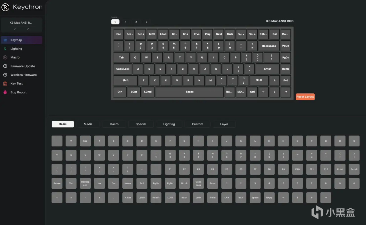 支持開源QMK/VIA開源改鍵一直是Keychron鍵盤的特色,K3 Max也不例外,用戶可以對鍵盤快捷鍵進行自定義設置,相比起很多外設需要下載專用驅動軟件纔可以設置改鍵,QMK開源/VIA改鍵直接在網頁端就可以進行設置,真的方便。
