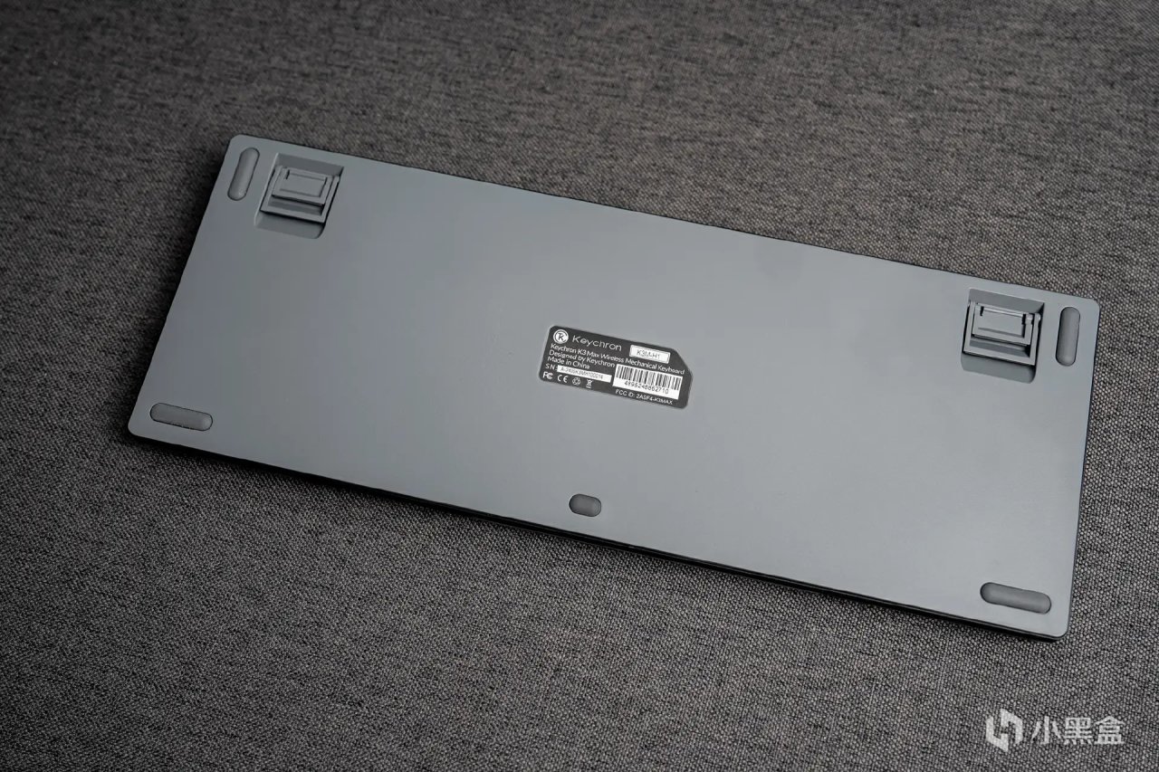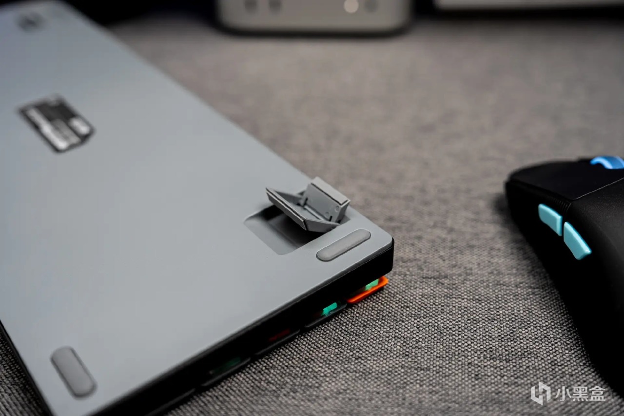 鍵盤底部爲塑料材質,配置了兩段式腳撐,可以調節鍵盤傾角,除了原始2.4°外可以通過腳撐支持4.2°和6.5°兩種高度,滿足不同使用習慣的用戶,我比較喜歡6.5°。
