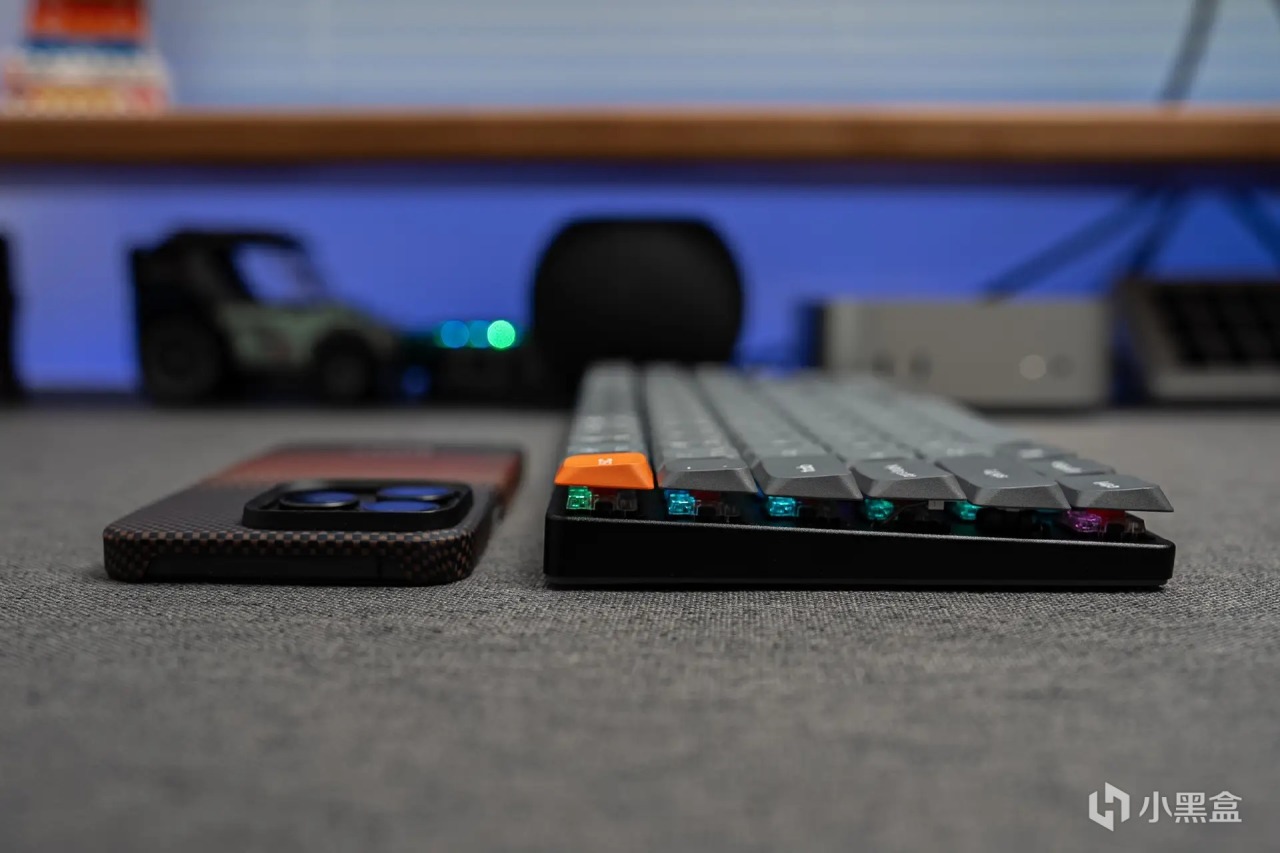 第一次上手矮軸機械鍵盤,Keychron K3 Max的設計還是挺讓我驚喜的,75%配列設計搭配無邊框設計的超薄金屬框架,尺寸只有306*116*22mm,最薄只有17mm,不僅非常小巧,而且完全沒有傳統機械鍵盤的厚重感。