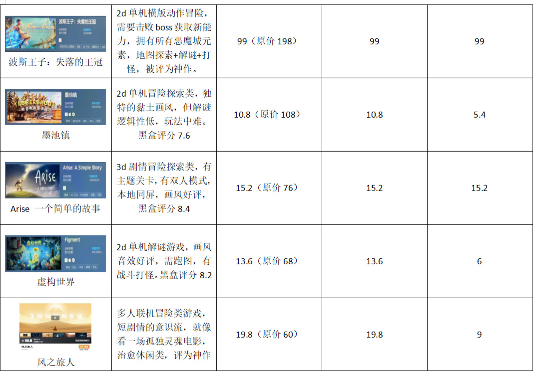 除了arise,其他的都没到史低,如果不急着玩可以再等等。波斯王子单价高,but评价很高,被称为神作,喜欢恶魔城元素的可以买,我太菜了,打怪类的我⑧太行。