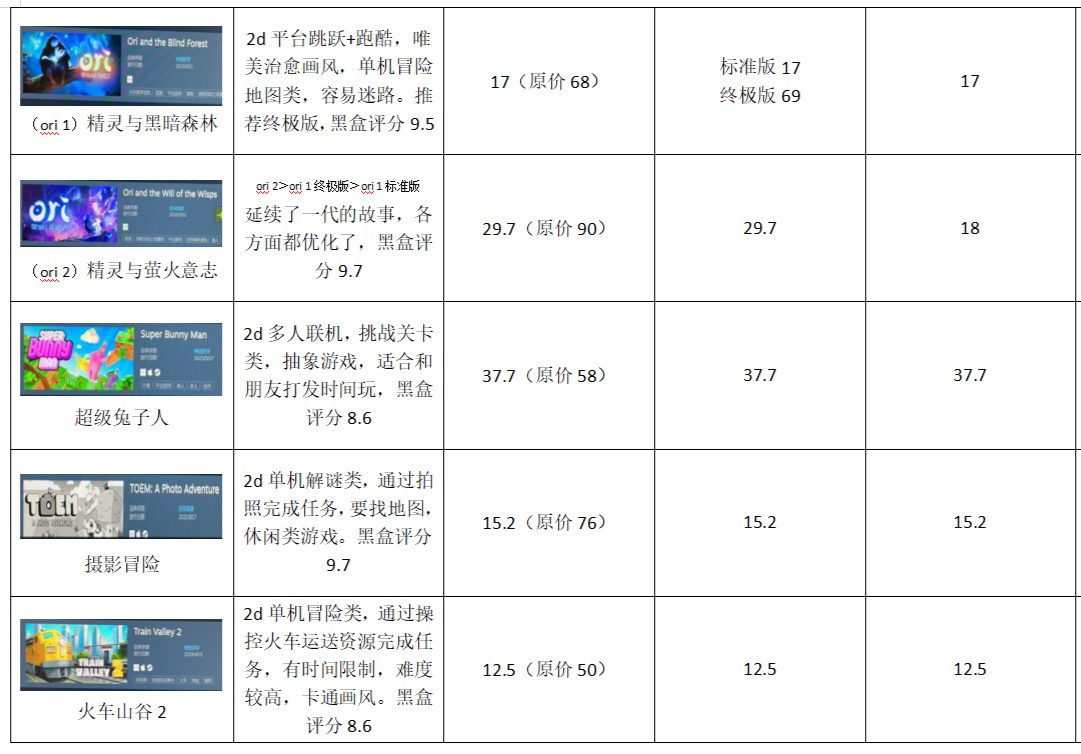 准备入手前三个了,但是ori2没有到史低。我现在库里四十多个小游戏,根本玩不过来,我弟要我克制一下再等等😑。