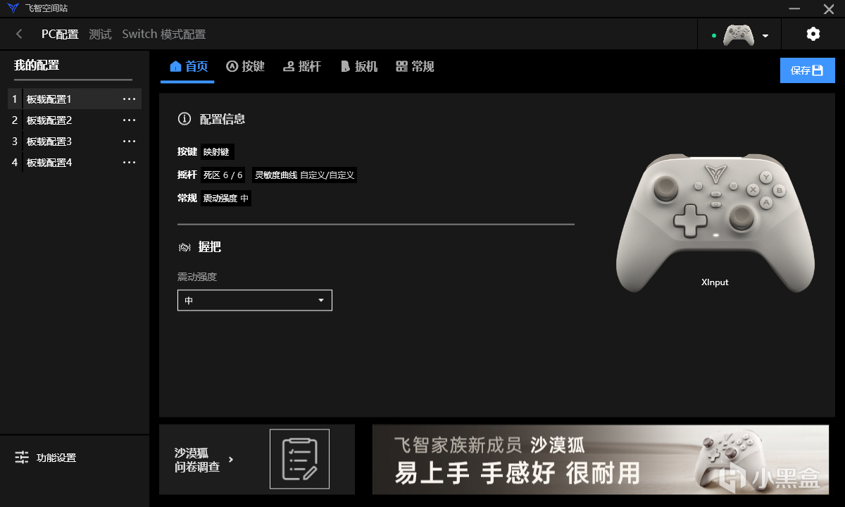 下載飛智空間站3.0,裏面可以調節按鍵、搖桿、震動、扳機等設置。