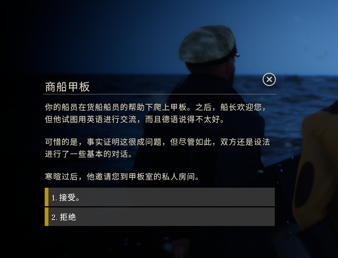 然后就是游戏里的一些随机事件:每次出海后指挥部都会有一些随机的任务,或者遇到一些中立国货轮登船检查,或者船员在压力过大的情况下精神崩溃。这些随机事件让游戏进行时颇有一种肉鸽风格。