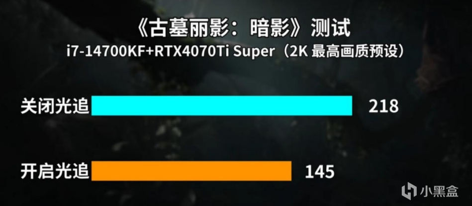 面对经典的《古墓丽影:暗影》,这个组合也表现出色。2K 最高画质设定下,不开光追时,劳拉的冒险之旅就像一场动作大片,帧数能飙到 218 帧,每一个跳跃、攀爬动作都流畅无比,就像你亲自操控劳拉在古墓中探险一样。开启光追后,画面更加精美逼真,145 帧的成绩也能让你沉浸在古墓的神秘氛围中,不错过任何一个精彩细节。