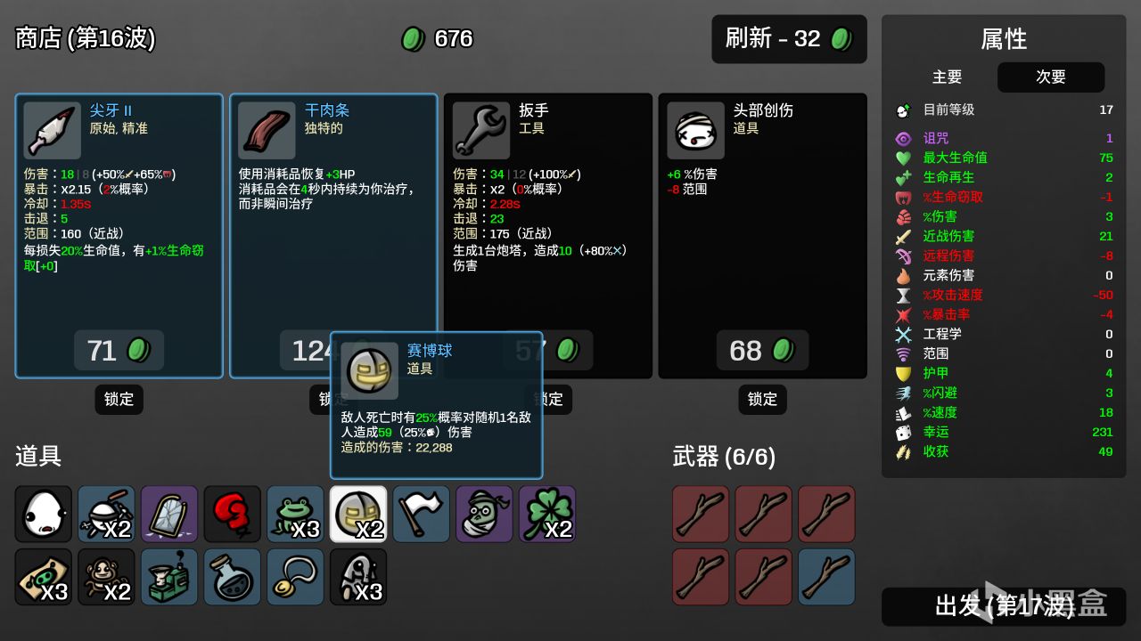商店刷新武器会受到携带武器的影响,开局携带没用的装备可以尽快回收,这样商店中可以增加刷新需要武器的概率
