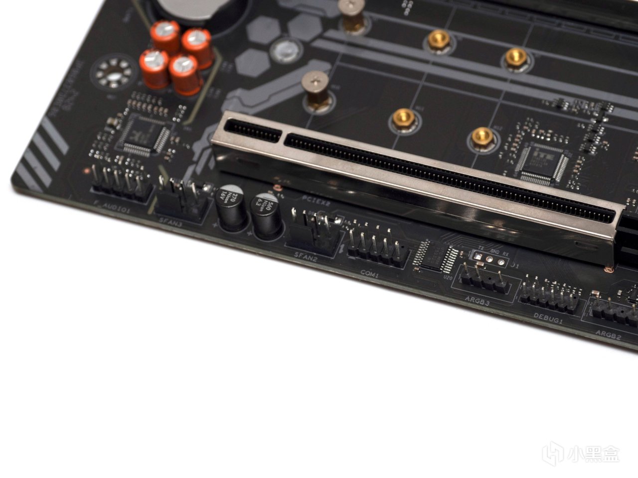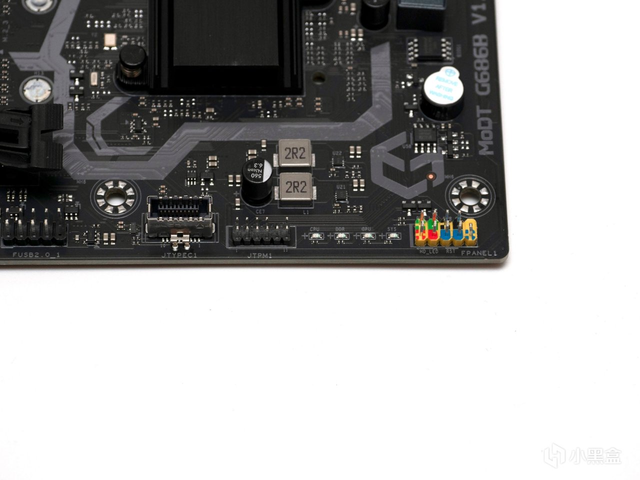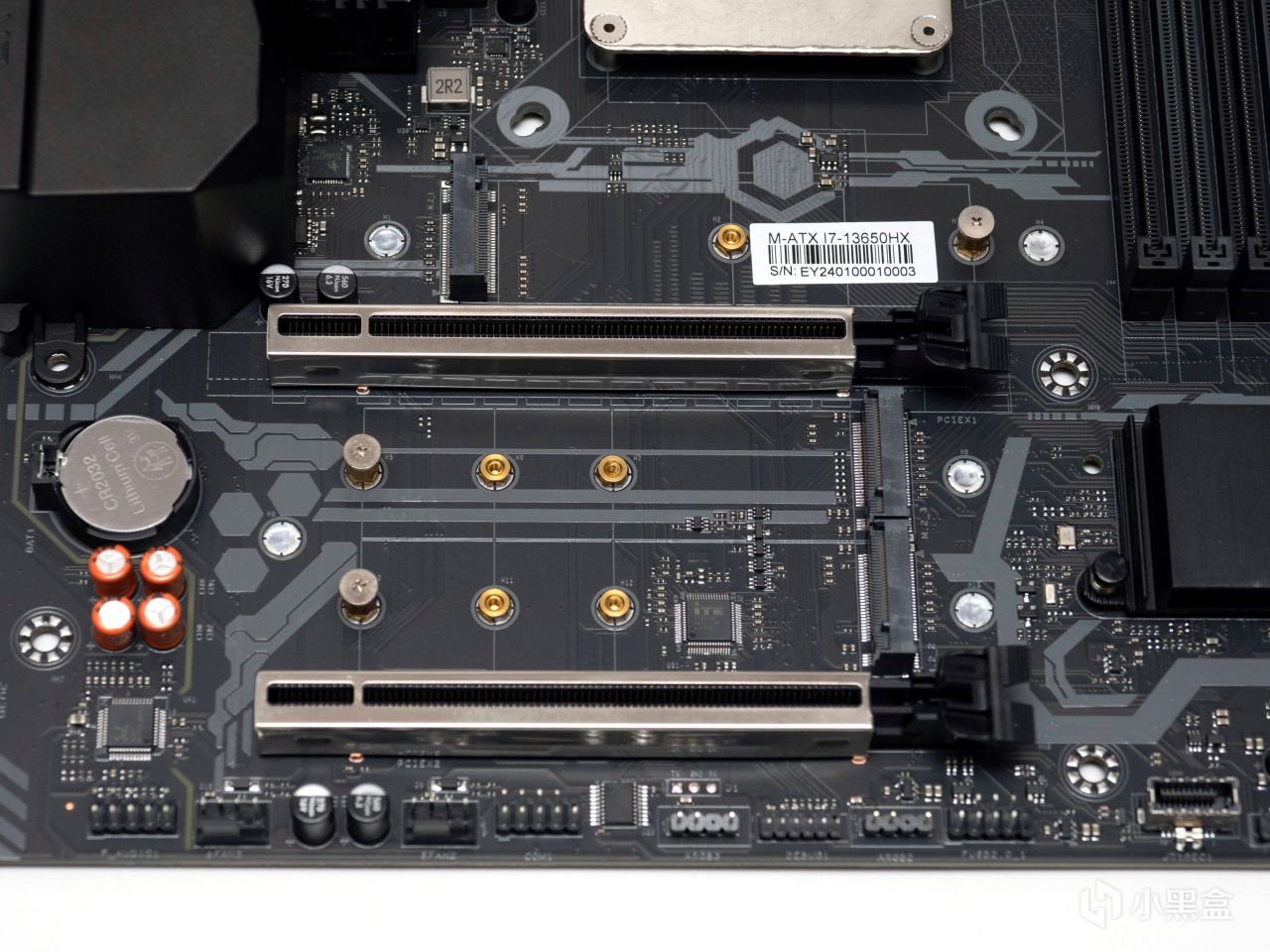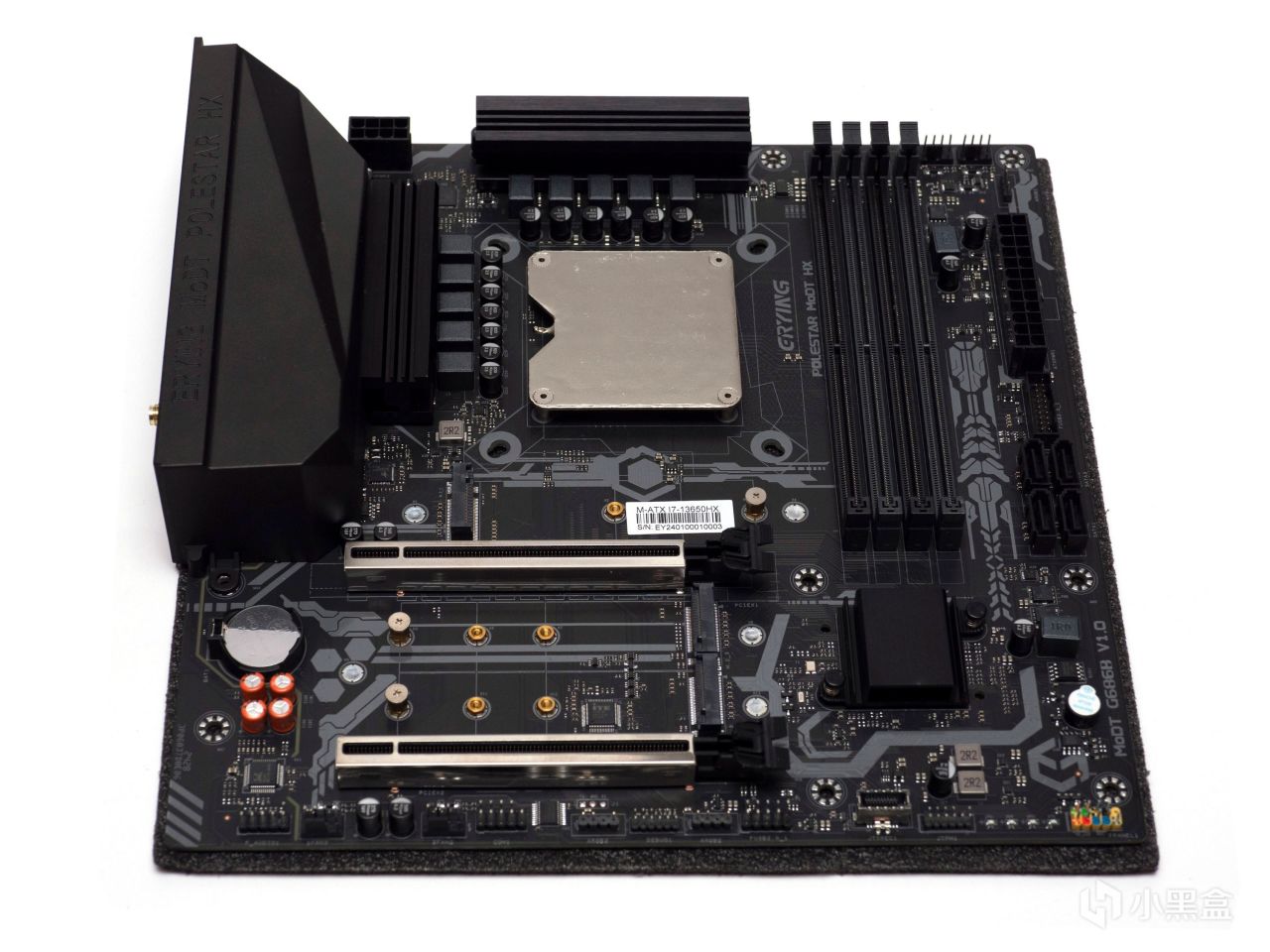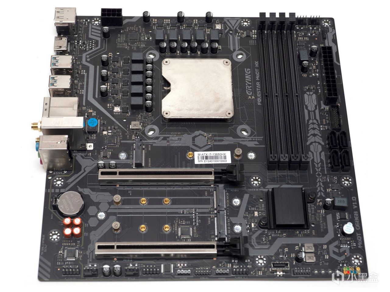 主板是MATX规格,比较意外的是用料还不错,不仅是全尺寸主板,PCIE插槽都是强化版,CPU是8+2相供电,也有供电散热片,甚至IO挡板还做了一体化(那单独还送个是干啥?),主板一共有3个M.2插槽,USB 3.0和3.2的插针也都有,RGB插针也有好几组,甚至还有Debug灯——这妥妥的千元级MATX主板配置啊!当然芯片组不是桌面上用的B760而是和HX配套的H770M,理论规格甚至更高一点......