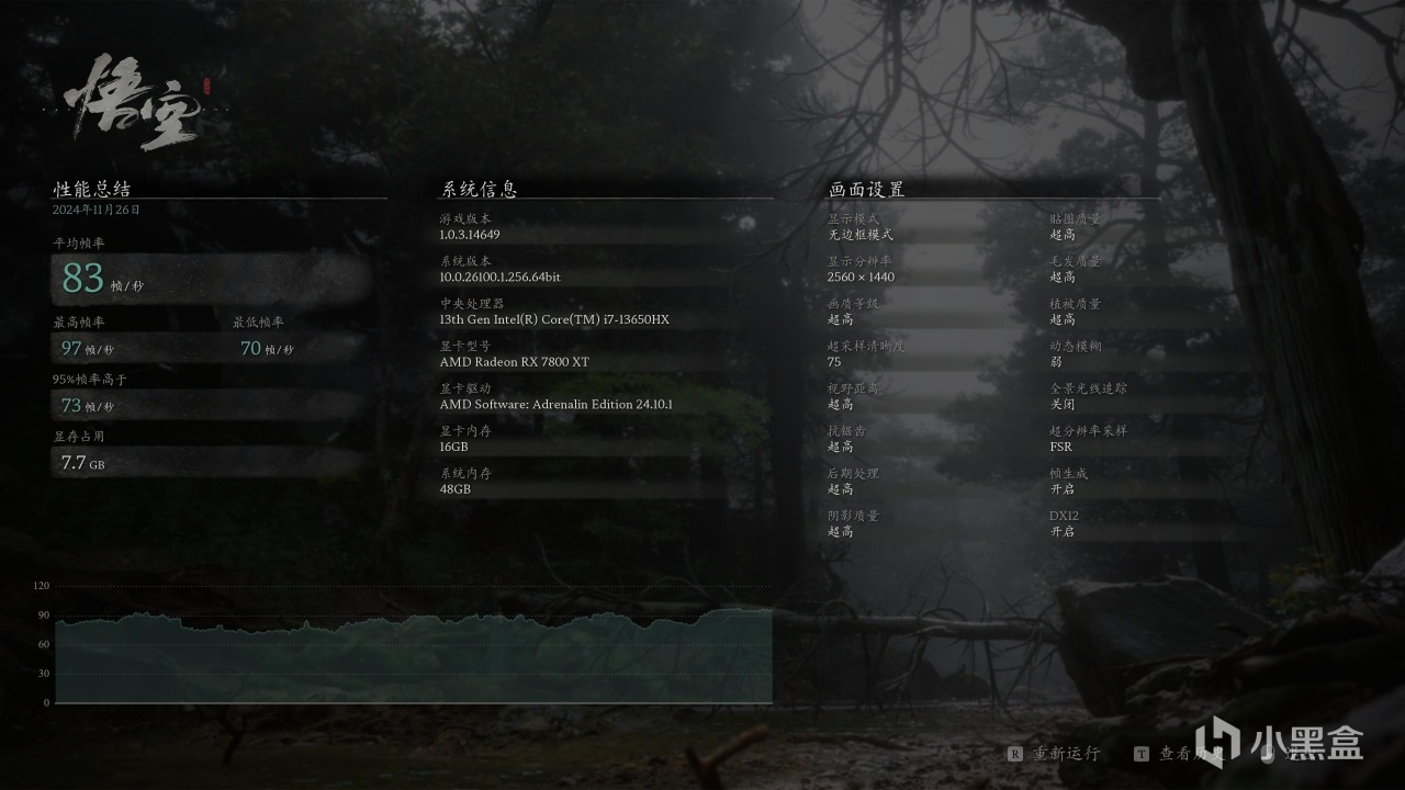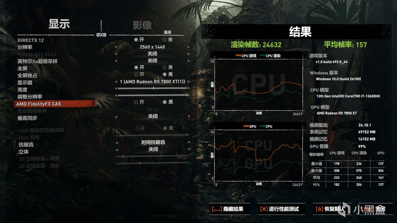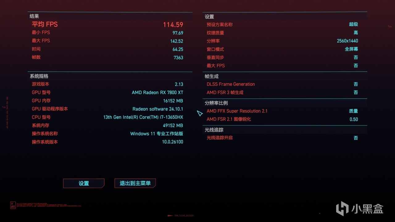 搭配7800XT跑了几个游戏的3个分辨率,可以明确的说,如今游戏玩家最常用的2K分辨率不会成为7800XT这一档次显卡的瓶颈,13600K游戏什么表现13650HX就是什么表现,基本在同一水平线上,考虑到它的价格,这个游戏性能非常满意了——如果内存频率能再高点肯定表现更好。