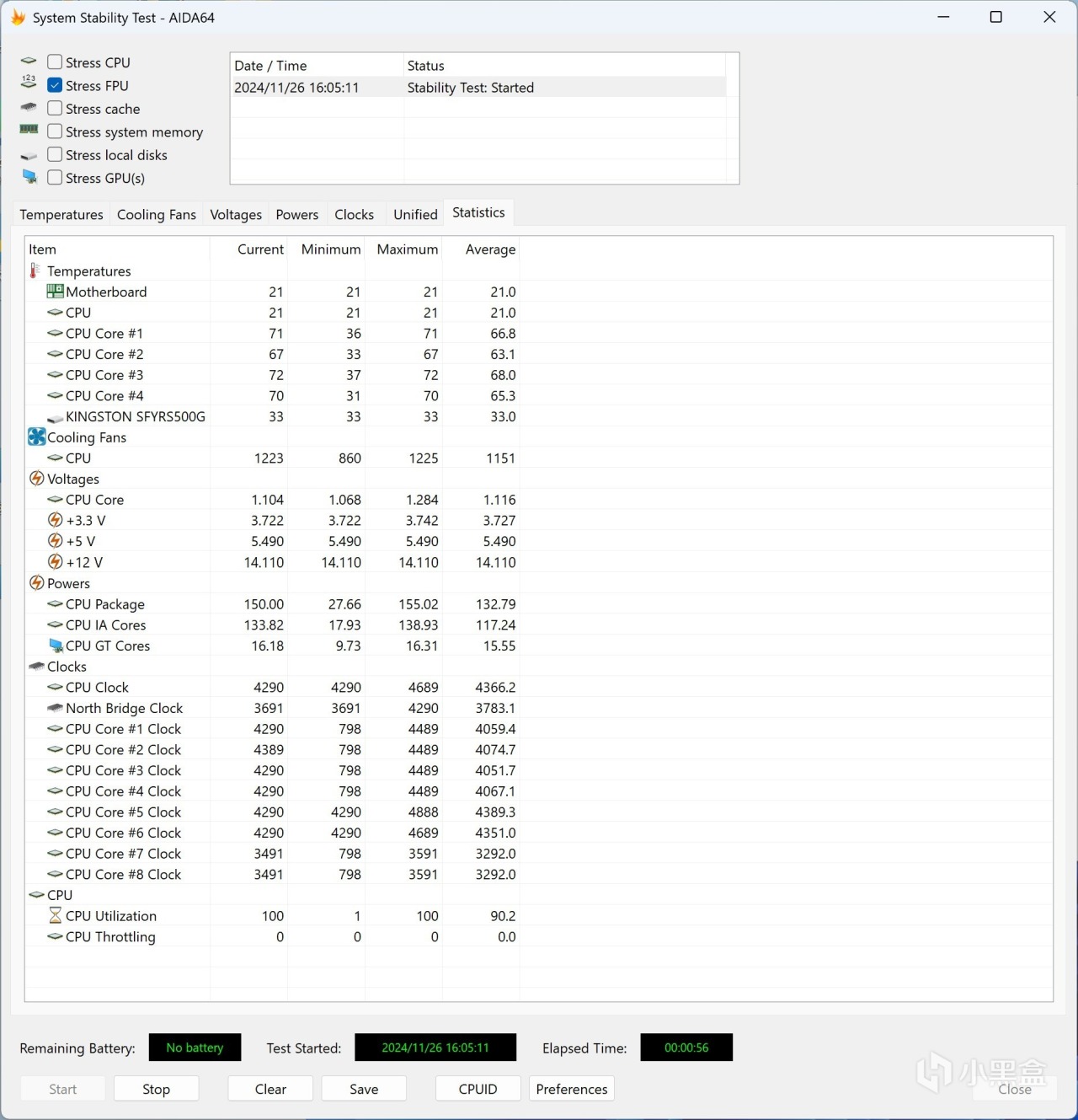 考虑到i7 13650HX的价格定位,以及供电和散热的实际需求,普通的单塔风冷其实就可以满足要求,毕竟最高功耗也不过157W,默认状态也只给开到了13650HX的标准功耗55W,再加上有均热板,简直是随便拿个啥就能搞定;