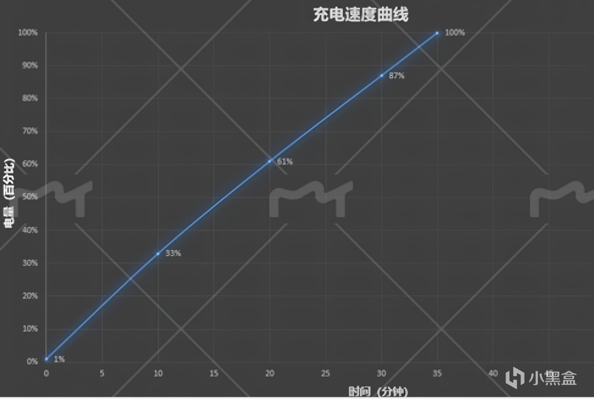 實測10分鐘充到37%,20分鐘到達61%,30分鐘達到87%,最終100%滿電,耗時36分鐘。