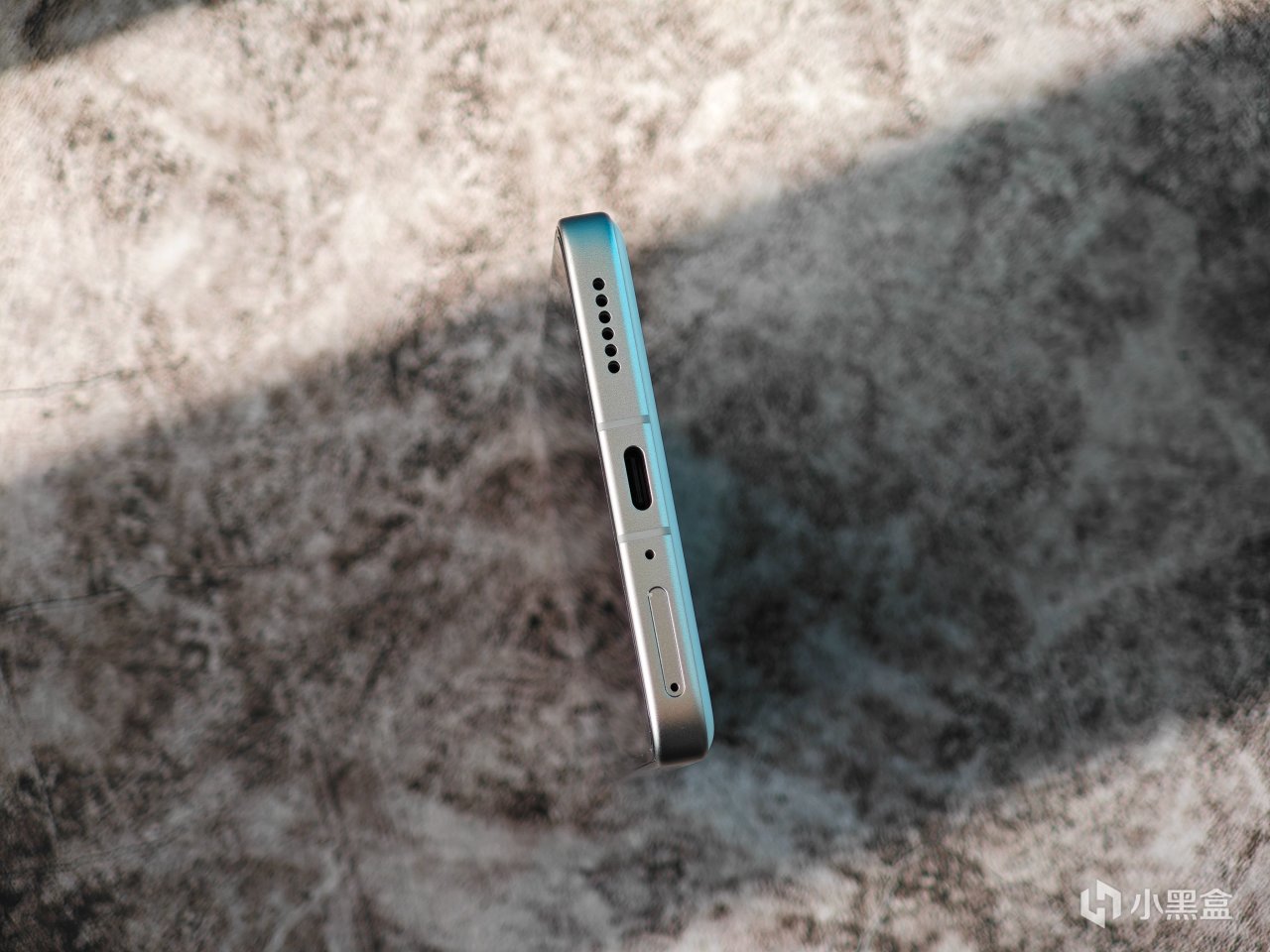 K80 Pro的背板和標準版一樣,採用的雙拼色設計。我手上的是“岩石白”配色,不過,我不太能理解,這個配色敢叫“白”。不太好描述,有點綠中泛白那個意思。